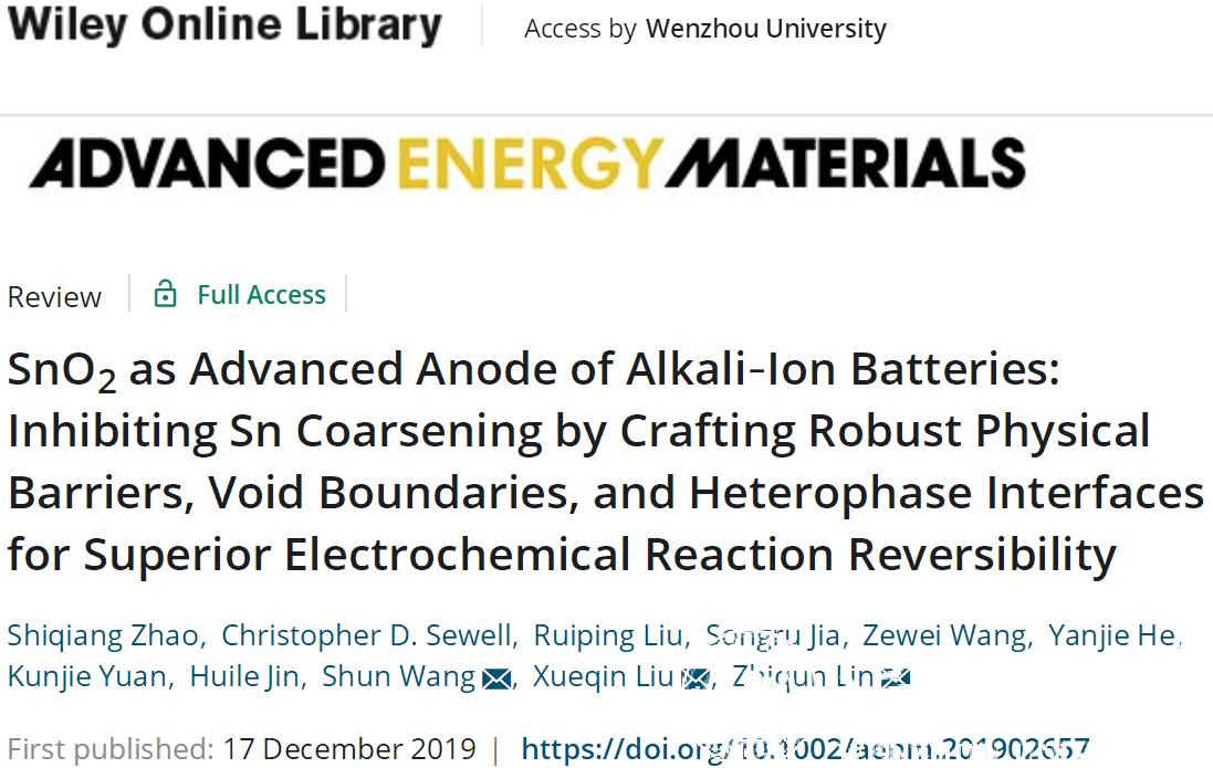 近日,国际能源顶级刊物《Advanced Energy Materials》发表了我校化材学院赵世强博士有关二氧化锡作为碱金属离子电池先进负极材料的综述性论文“SnO2as Advanced Anode of Alkali-Ion Batteries: Inhibiting Sn Coarsening by Crafting Robust Physical Barriers, Void Boundaries, and Heterophase Interfaces for Superior Electrochemical Reaction Reversibility”(二氧化锡作为碱金属离子电池先进负极材料:构建稳健的物理屏障、孔隙边界、异质界面抑制锡粗化增强电化学反应可逆性),化材学院院长王舜教授与美国佐治亚理工学院林志群教授为通讯作者,九州网页版_九州(中国)为第一通讯单位。