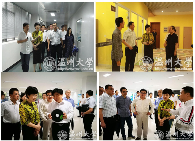 2018年9月12日,温州市副市长郑朝阳莅临我校激光与光电智能制造研究院和新材料产业技术研究院调研政府与高校合作,叶世强副秘书长、市教育局、浙南产业集聚区管委会、温州高新区管委会、龙湾区政府、九州网页版_九州(中国)、温州医科大学、温州职业技术学院、浙江工贸职业技术学院、温州科技职业学院、浙江东方职业技术学院、浙江三星机电股份有限公司、上海衡宝电气有限公司、温州莲华环保有限公司、零库网等相关单位负责人陪同调研,薛伟副校长、激光智造研究院院长马光、新材料研究院常务副院长钱鹏程及相关部门负责人热情接待,并陪同参观。