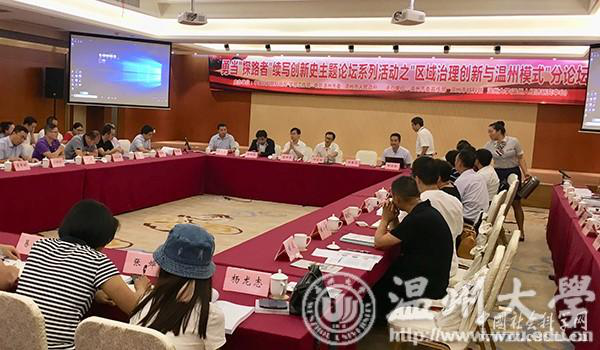 由我校温州人经济研究中心具体承办的“区域治理创新与‘温州模式’分论坛”下午在温州市人民大会堂召开。浙江省社会科学界联合会党组书记盛世豪、中国社会科学院社会学研究所副所长王春光、武汉大学中国主体功能区战略研究院/长江经济带发展研究院副院长吴传清、中国社会科学杂志社对外传播中心主任林跃勤等参加,副校长方益权主持。
