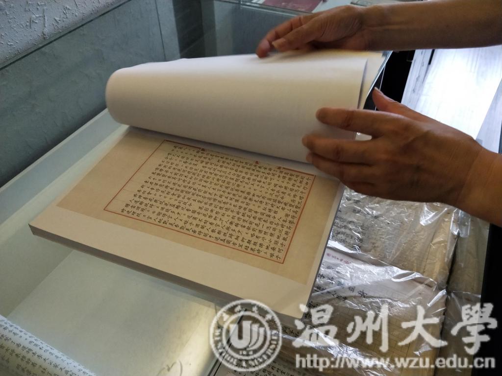 俞为民教授兴致勃勃地带着记者参观研究中心的宝库——温大人文学院的南戏文献陈列室,对于陈列室里面的珍藏,他如数家珍,为记者一一讲述它们的故事。
