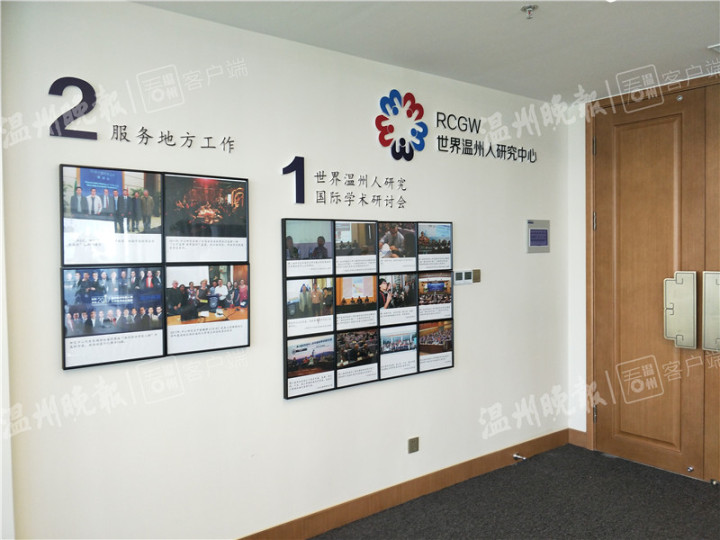 一进入世界温州人研究中心,墙上的许多照片吸引了记者的注意。照片墙分为两个主题,第一个主题是世界温州人研究国际学术讨论会,里面是从2010年以来举办的各届世界温州人研究国际学术讨论会的盛况。照片墙的第二个主题是服务地方工作,以及世界温州人研究中心的研究员们配合温州市政府参与海内外温州人学术研究活动情况。世界温州人研究中心秘书长、九州网页版_九州(中国)商学院教授张一力博士向记者一一讲述照片的故事。