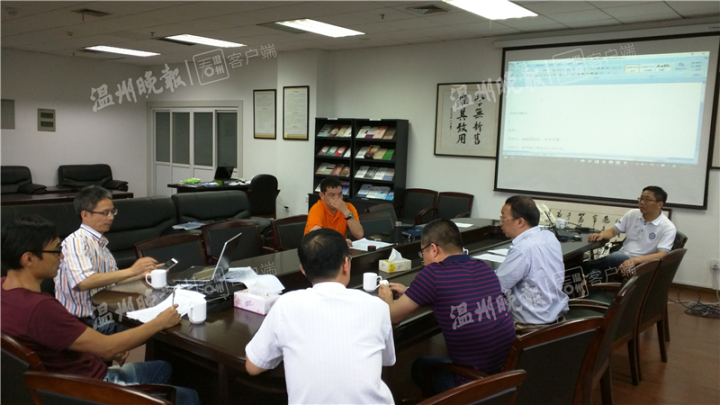 △2016年6月16日,世界温州人研究中心相关人员在讨论“世界温州人研究三年行动计划”。