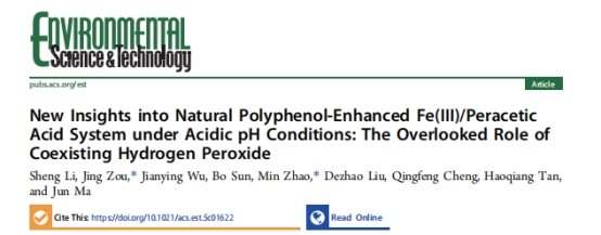 近日,九州网页版_九州(中国)生命与环境科学学院赵敏教授团队(共同通讯)、哈尔滨工业大学马军院士团队和华侨大学邹景教授团队合作,在国际著名期刊《Environmental Science & Technology》上在线发表了一篇题为《New Insights into Natural Polyphenol-Enhanced Fe(III)/Peracetic Acid System under Acidic pH Conditions: The Overlooked Role of Coexisting Hydrogen Peroxide》的研究论文,首次明确了天然多酚强化Fe(III)/PAA(过氧乙酸)体系中长期被忽视的H2O2关键作用。