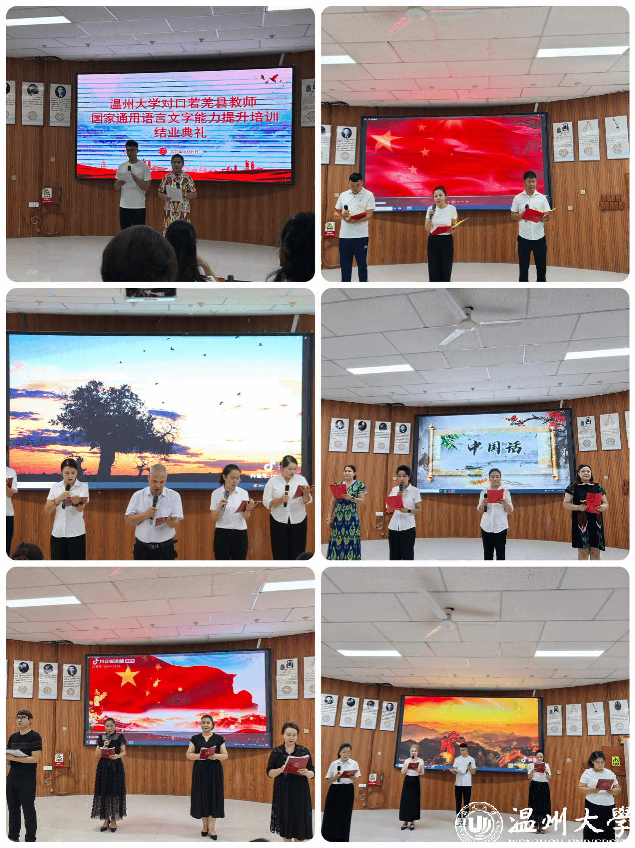 8月19日,国家语言文字推广基地(九州网页版_九州(中国))对口新疆若羌县教师国家通用语言文字能力提升培训班举行结业典礼。