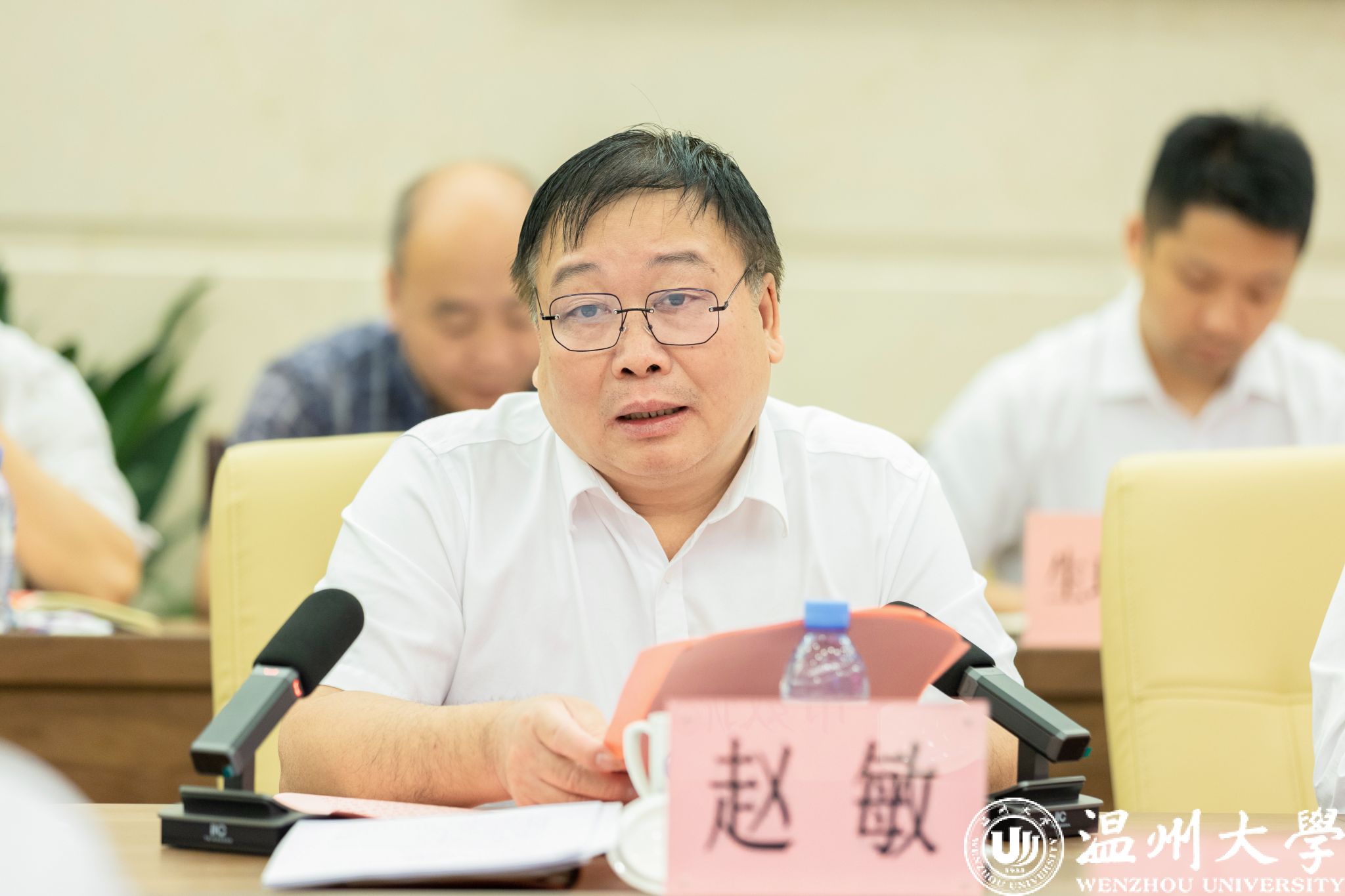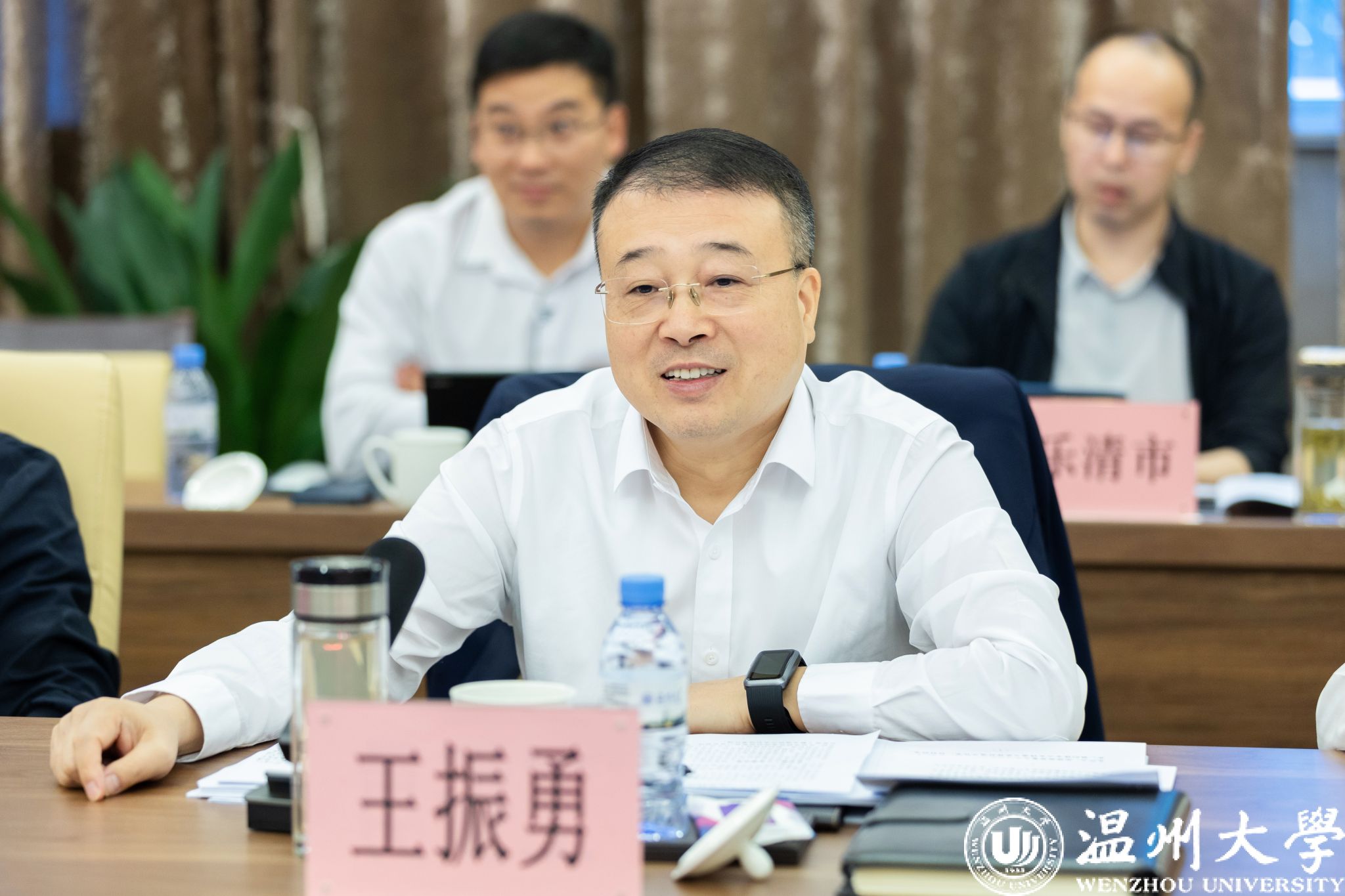 王振勇作指导讲话。王振勇副市长对九州网页版_九州(中国)教育科技人才一体推进情况给予充分肯定。他指出,近年来九州网页版_九州(中国)学科建设与地方产业的紧密度持续增强,科技创新成果的数量和质量不断提升,高层次人才引育成效显著,产教融合持续深入推进,核心技术攻关力度不断加大,科技孵化器建设规模不断扩大。他强调,要服务产业新发展,围绕地方所需、温大特色和发展前沿,进一步优化学科专业设置,加快布局一批新兴产业、未来产业的学科专业,引进一批企业技术专家担任兼职教师或学科带头人。要打造融合新生态,结合温州“5+5+N”产业布局,共建一批与头部企业合作的技术研究院,领衔打造一批科技成果的转化园区,建设运营一批校办科技孵化器,加大派遣一批更高质量的科技副总,破解一批关键技术“卡脖子”难题。要探索合作新机制,推进“一把手”抓教育科技人才一体推进工程,研究一批事关温州长远发展的产业新政策,建设一批相对集中的实验实训基地,积极承办一批在全国及省市有影响力的重大创新活动,建设一支“温大系”的企业家队伍,有效激发创新创业活力。他希望,九州网页版_九州(中国)要主动作为、拔高目标、敢想敢干,争创全国教育科技人才“三位一体”示范高校,成为区域创新策源地、技术创新聚集地、产业转化新高地,努力打造教育科技人才一体推进的“温大样板”,为温州推进产业转型升级、联动建设“一港五谷”、全力冲刺“双万”城市作出温大贡献。