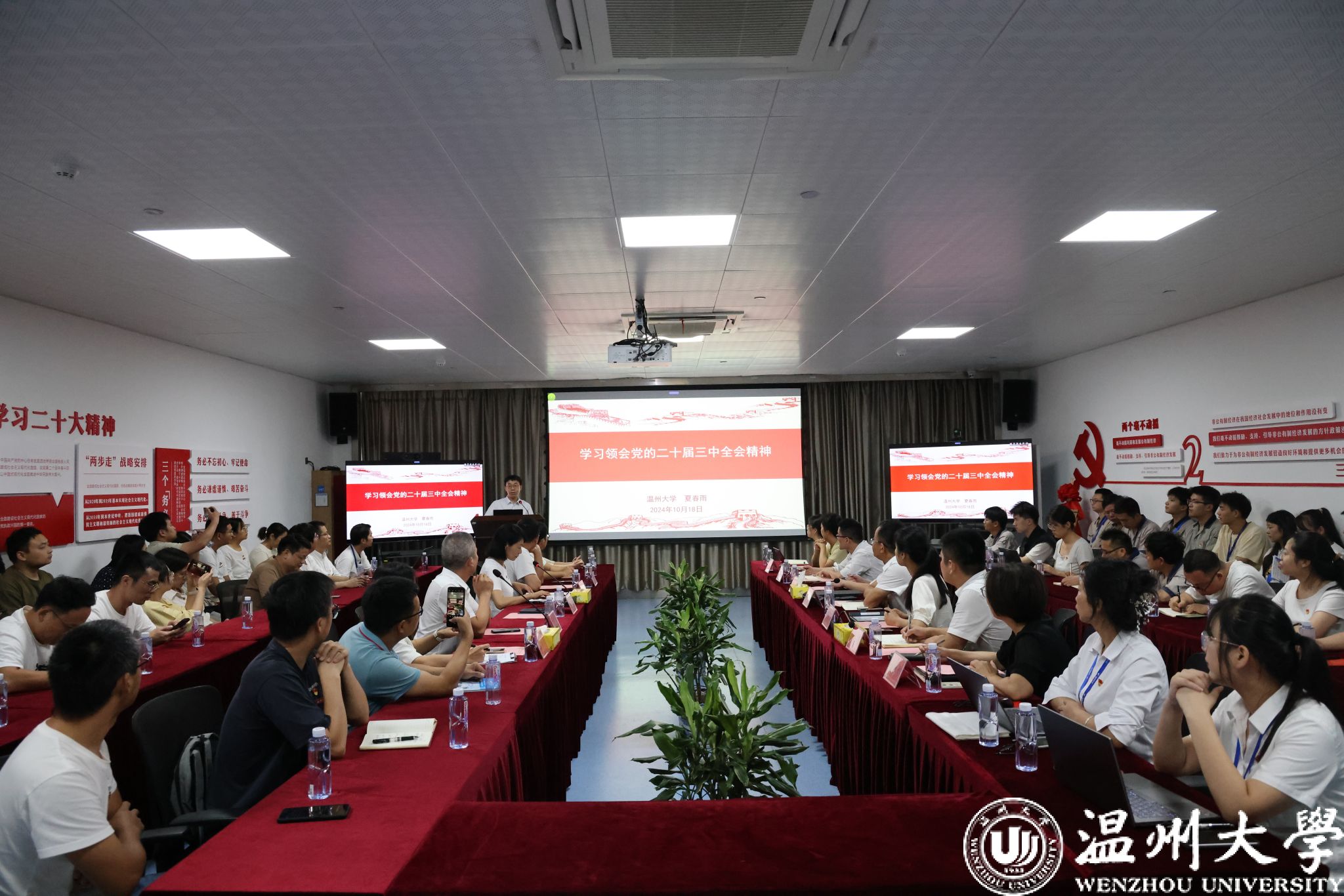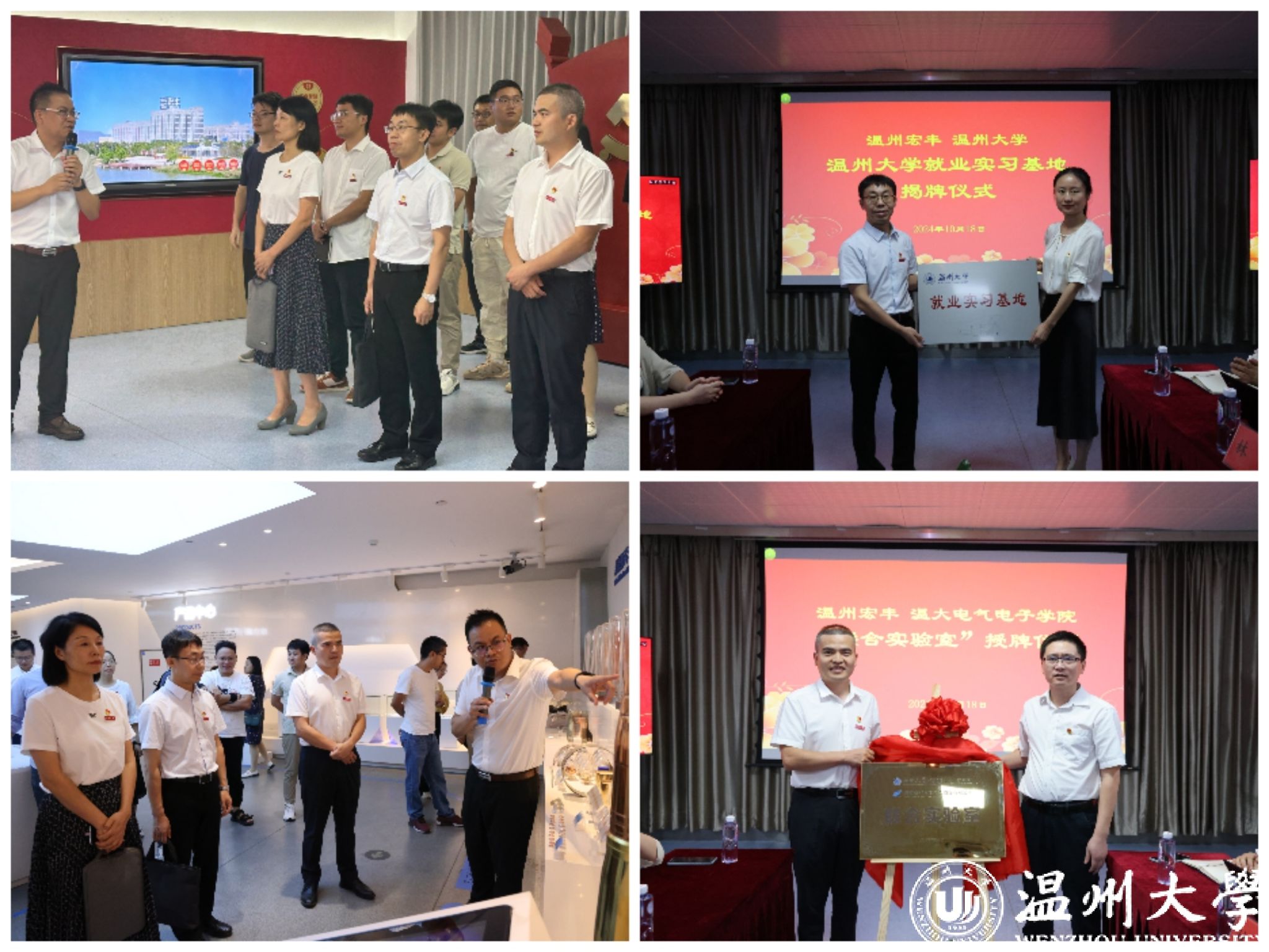 活动中,双方党员共同参观了温州宏丰党建文化展示厅、世界宏丰展示厅,重温了入党誓词,举行了“九州网页版_九州(中国)就业实习基地”授牌和电气与电子工程学院、温州宏丰“联合实验室”揭牌仪式。活动最后,大家集聚一堂,共同聆听九州网页版_九州(中国)党委委员、组织部部长夏春雨教授讲授《深入学习领会党的二十届三中全会精神》专题辅导报告。