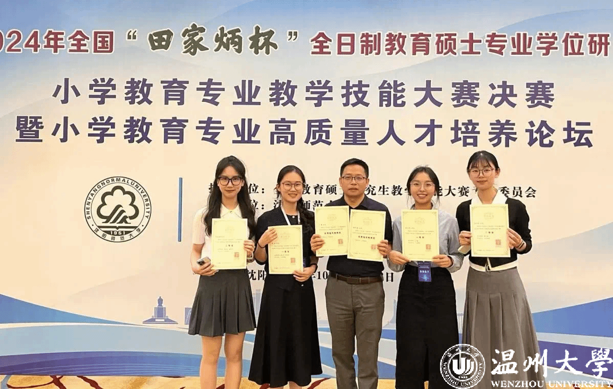 近日,2024年全国“田家炳杯”全日制教育硕士学位研究生小学教育专业教学技能大赛在沈阳师范大学举行。经过初赛的选拔,我校教育学院四位小学教育专业研究生进入最终的决赛。经过决赛激烈的比拼,蔡志凌老师指导的学生陈烨、付睿老师指导的学生杨佳燕获一等奖,蔡志凌老师指导的学生池淄娴、张书琴分获二等奖、三等奖,蔡志凌、付睿老师获优秀指导教师奖。我校在比赛中共斩获六个奖项,开创了我校小学教育专业研究生培养史上最好成绩。