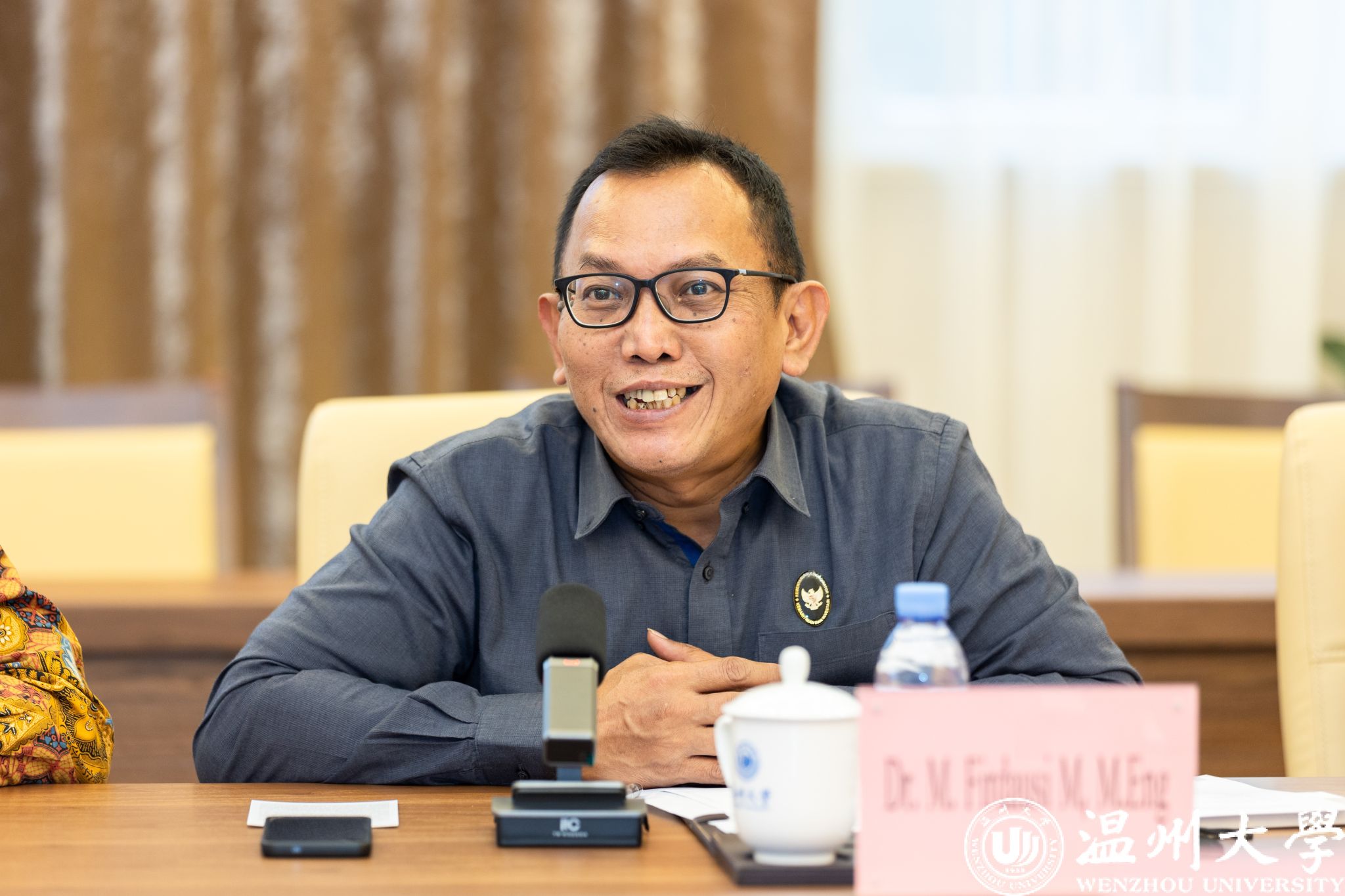 近日,印尼海事与投资统筹部海洋与交通产业副部长助理Manti,M.Firdausi,印尼教育基金管理机构奖学金处主任Dwi Larso、研究处主任Ayom Widipaminto率领一行8人代表团,在青山实业永青集团、印尼莫利瓦利工业园代表的陪同下,抵达九州网页版_九州(中国)进行访问。九州网页版_九州(中国)校长赵敏,以及国际处、国际教育学院负责人等热情接待了印尼代表团和永青集团一行。