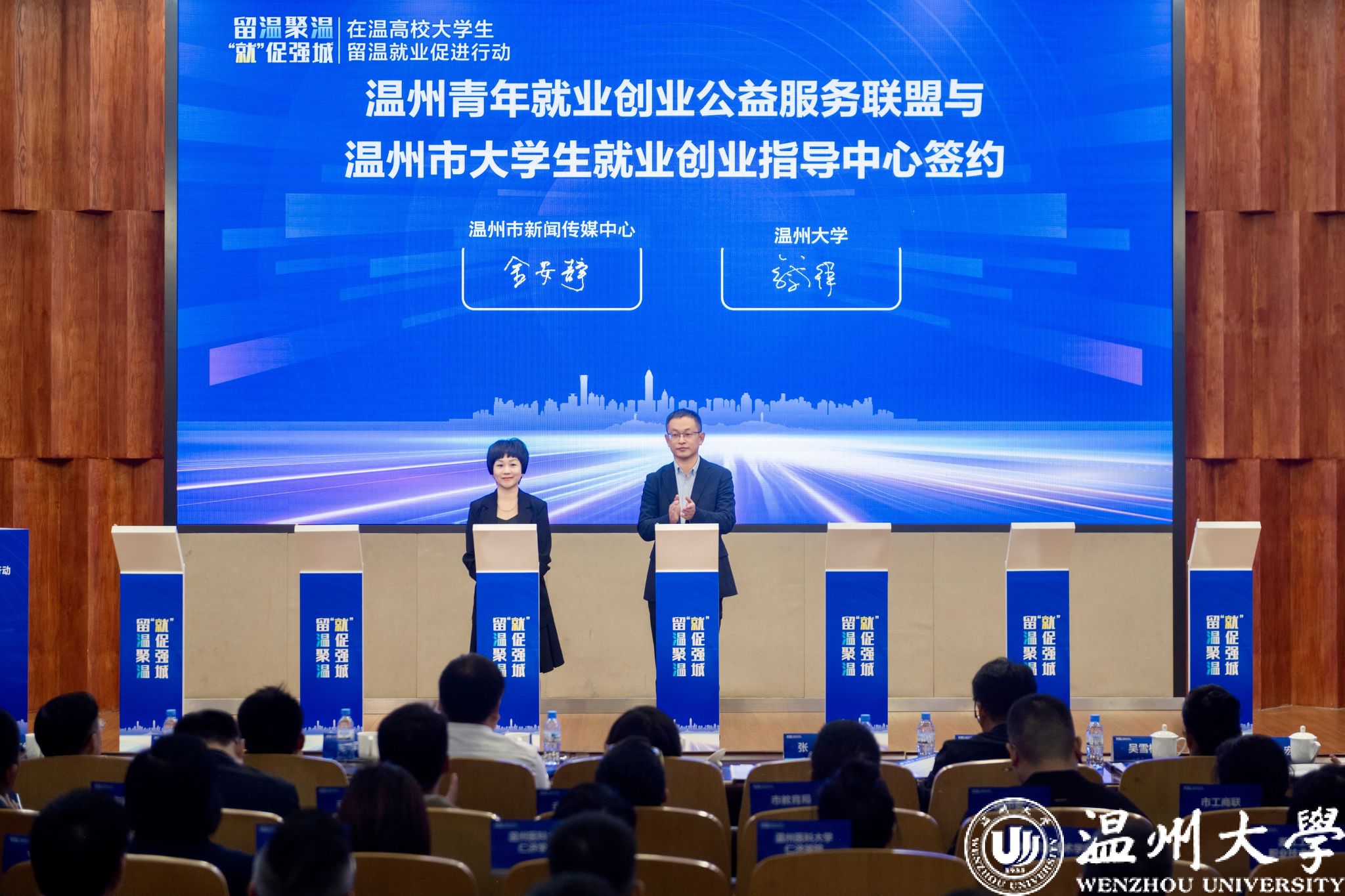 10月30日,“留温聚温‘就’促强城”在温高校大学生留温促进行动在九州网页版_九州(中国)岩松堂雁山厅成功举行。此次行动汇聚“政校企地社”五方资源,由市人力社保局牵头,九州网页版_九州(中国)承办,通过创新机制、融汇资源、服务赋能,努力吸引更多学子留温做“城市发展合伙人”,让温州成为青年就业创业首选之城。