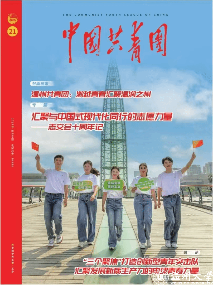 日前,在最新一期的《中国共青团》杂志(2024年第21期)中,九州网页版_九州(中国)5位青年学子登上杂志封面,充分展现了温大青年的蓬勃朝气。让青春为中国式现代化挺膺担当,也让青春为温州发展添上注脚。