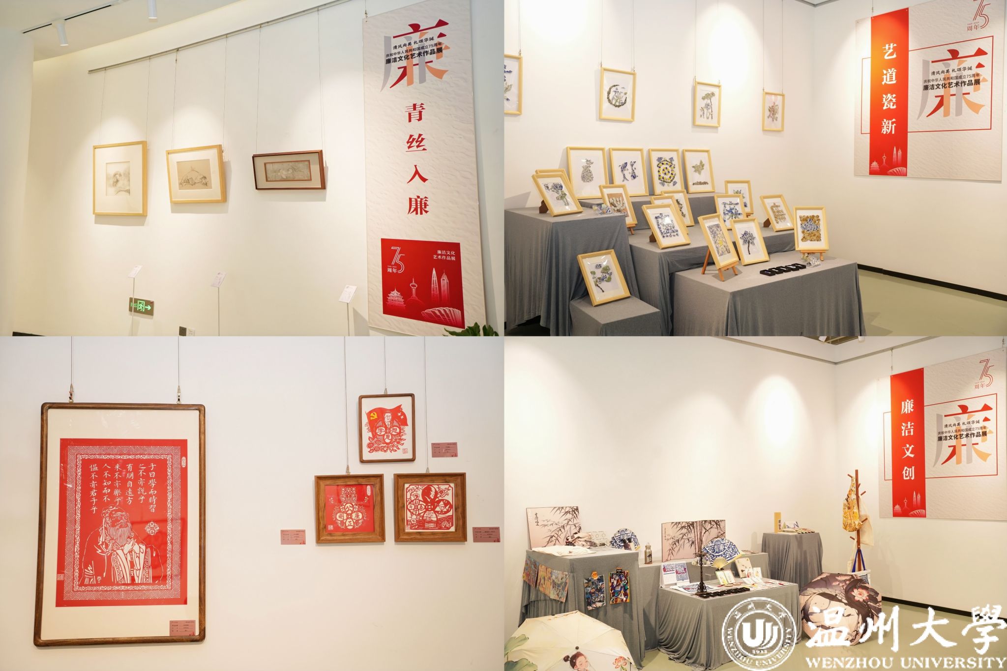 美术馆门口同步展出的,还有各个学院具有专业特色的、师生广泛参与的“一院一品”廉洁文化互动矩阵,鼓励各部门加强协作,强化“清廉建设”责任共同体意识,共同构建廉洁文化教育的长效机制,形成全员参与、全程覆盖、全方位渗透的廉洁文化教育体系。