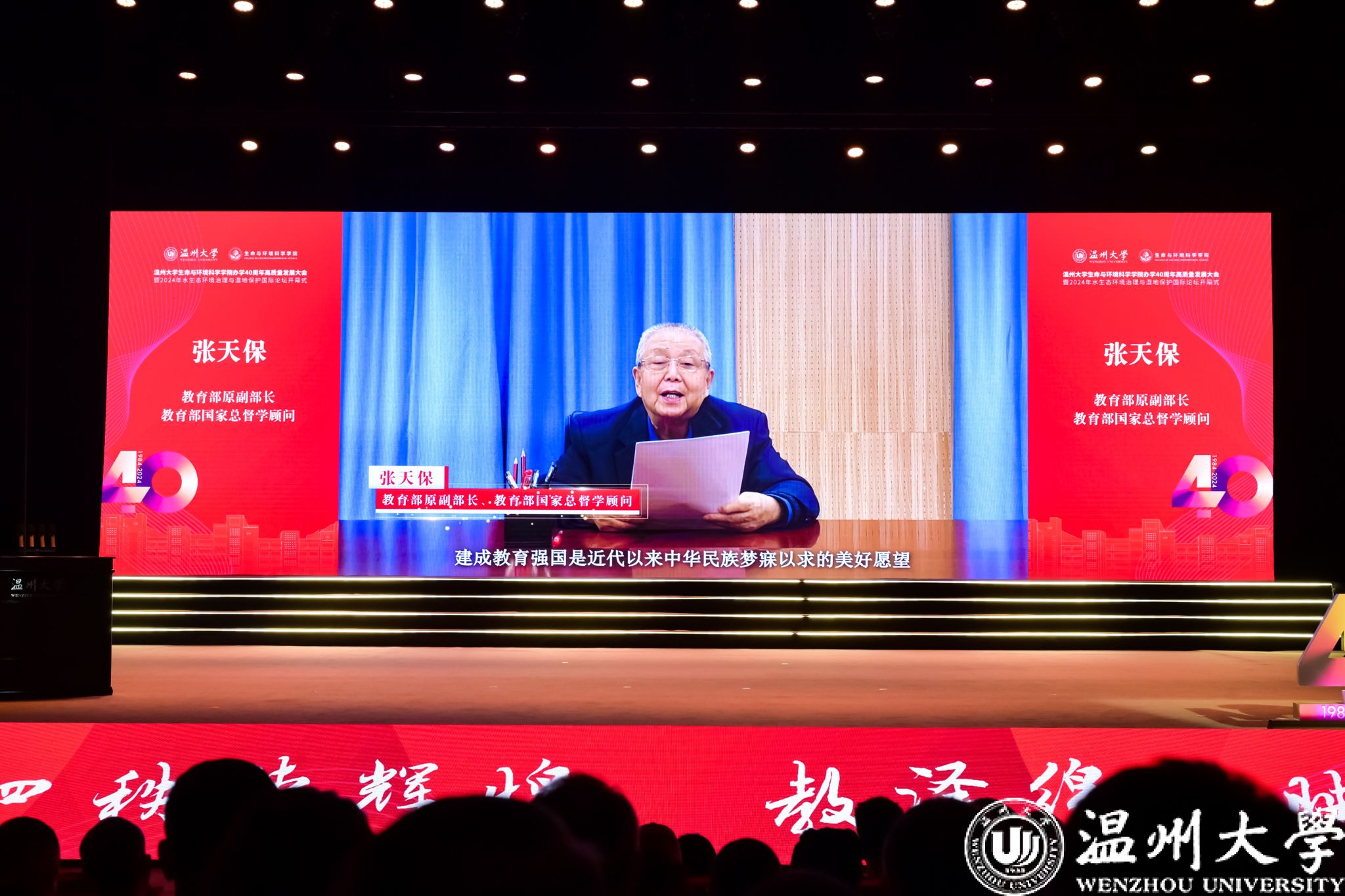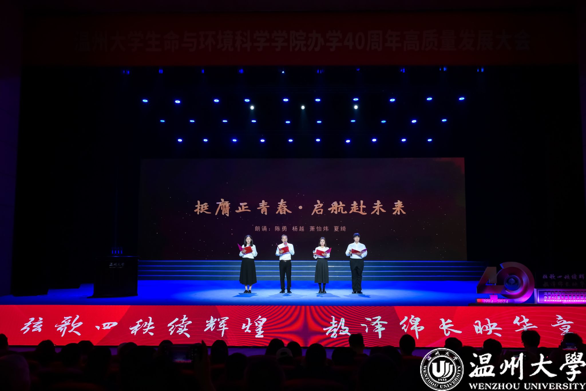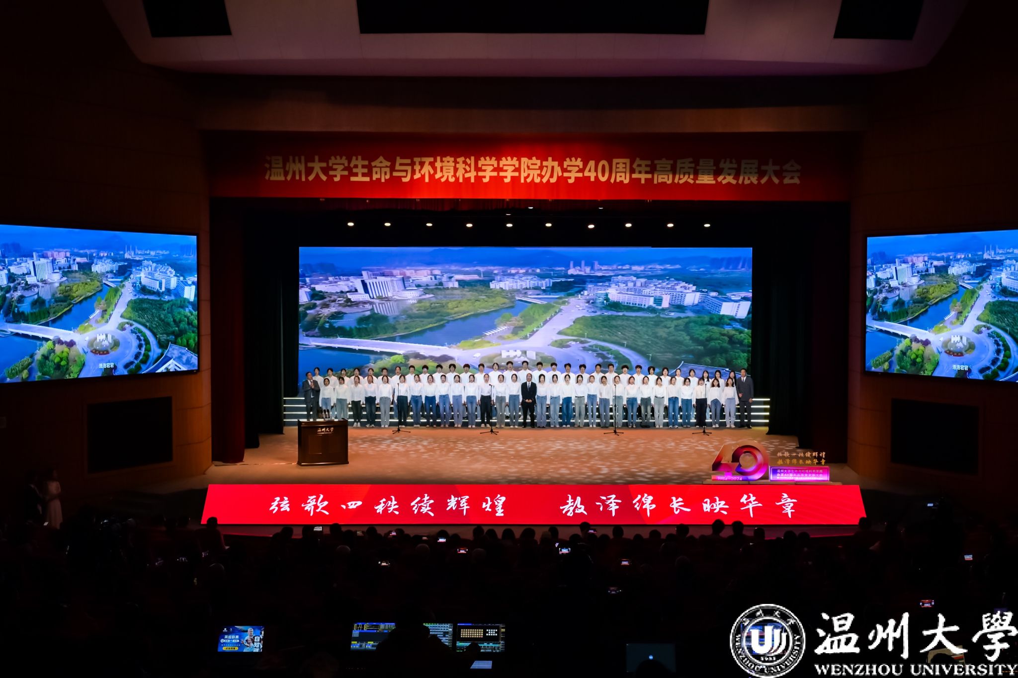 赵敏致辞。他代表九州网页版_九州(中国)向长期以来关心和支持生环学院建设与发展的各级领导、社会各界朋友、广大校友及辛勤耕耘在教育科研一线的全体教职员工致以敬意。他表示,四秩春秋,九州网页版_九州(中国)生命与环境科学学院用40年的砥砺奋进,书写了教书育人、科研报国的精彩篇章,一代代“生环人”把科研创新写在祖国的大地上,描绘了绿水青山、大美温州的生态画卷。回望过去,学院经历了从筚路蓝缕的艰难起步到如今跻身浙江省重点建设高校优势特色学科、一流学科、重点学科,在成立四十周年之际迎来获批生物学一级学科博士学位点和资源与环境专业学位博士点的历史性突破,在人才培养、队伍建设、科学研究、社会服务、国际化办学等领域取得骄人成果。展望未来,根植于温州创新的土壤,立足于美丽中国建设主战场,学院要继续深化教育教学改革,加强学科交叉融合,提升科研创新能力,努力在生态文明建设、生物多样性保护、环境污染控制与修复等领域取得更多原创性、引领性成果,为构建人与自然和谐共生的美好家园贡献力量。