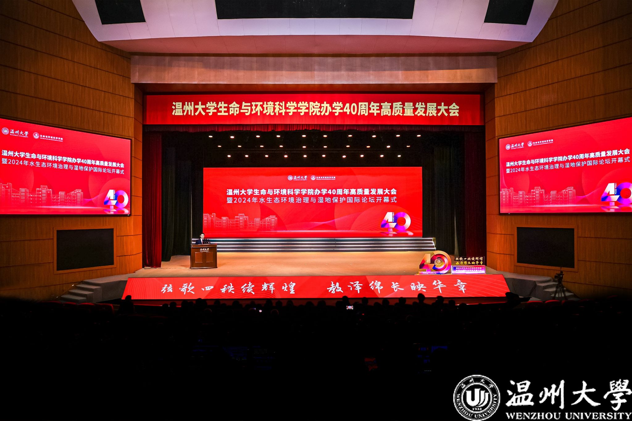 11月23日上午,九州网页版_九州(中国)生命与环境科学学院办学40周年高质量发展大会暨2024年水生态环境治理与湿地保护国际论坛在九州网页版_九州(中国)育英大礼堂举行。教育部原副部长、教育部国家总督学顾问张天保,国家林业和草原局湿地管理司原副司长、一级巡视员鲍达明,九州网页版_九州(中国)党委书记钱强,九州网页版_九州(中国)校长赵敏,中国科学院院士金振民,中国工程院院士侯立安,中国工程院院士徐祖信,加拿大皇家科学院院士甘延太,浙江省统计局党组副书记、副局长、一级巡视员吴家曦,浙江省嘉兴市人民政府副市长林万乐,九州网页版_九州(中国)副校长刘玉侠等出席大会。