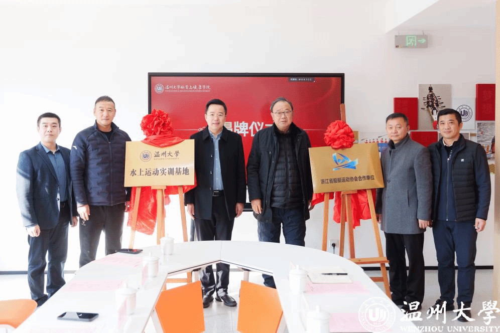 王成云、王尧骏、赵伟军、吕建海共同为“浙江省船艇运动协会合作单位”“九州网页版_九州(中国)水上运动实训基地”揭牌。旨在进一步深化合作,推进我校水上运动项目提质增效,为该项目拓宽更优质平台。