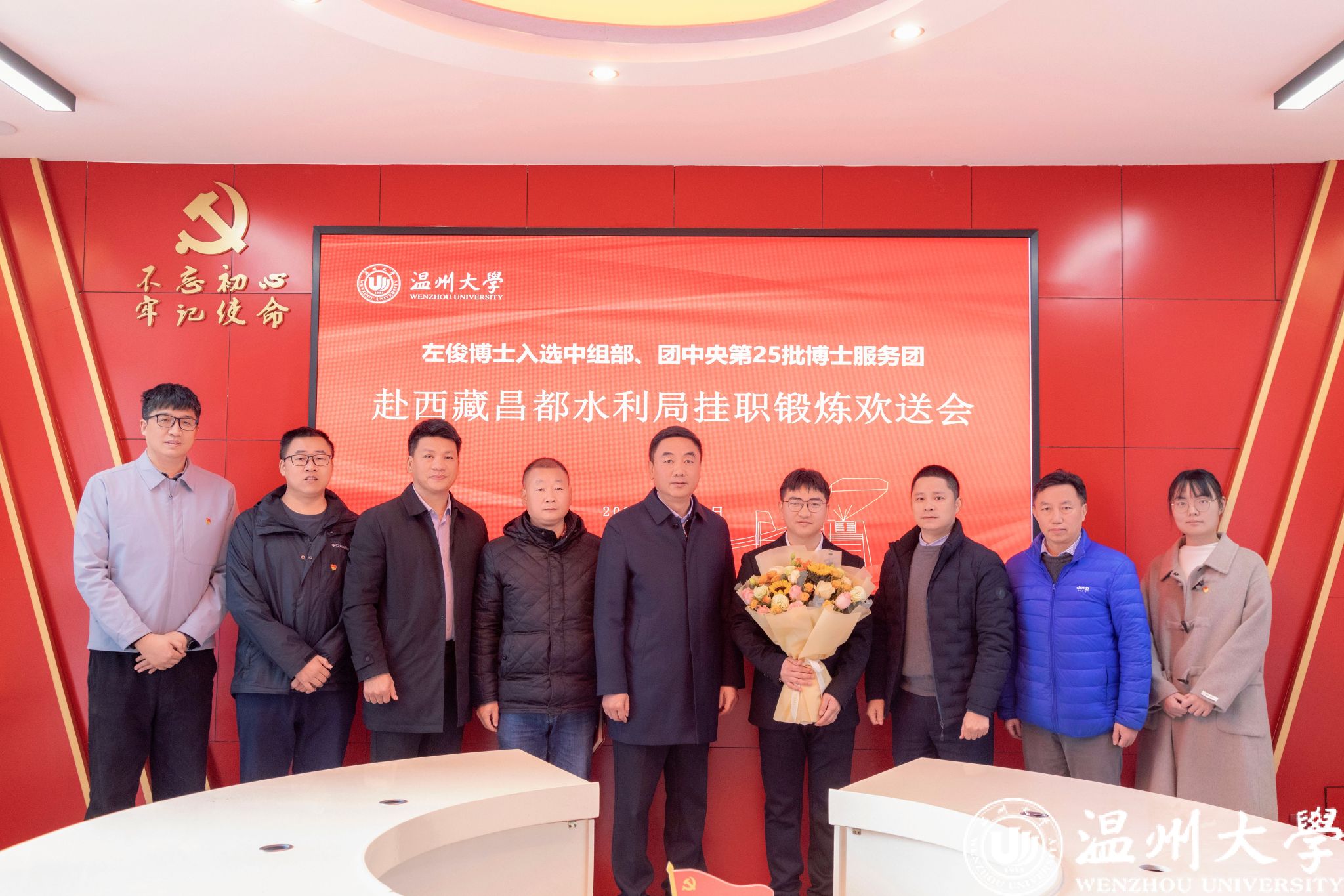 近日,我校生环学院左俊博士入选中组部第25批博士服务团。1月13日上午,学校举行欢送座谈会,校党委书记钱强出席,党委组织部、生环学院有关人员、教师代表参与。