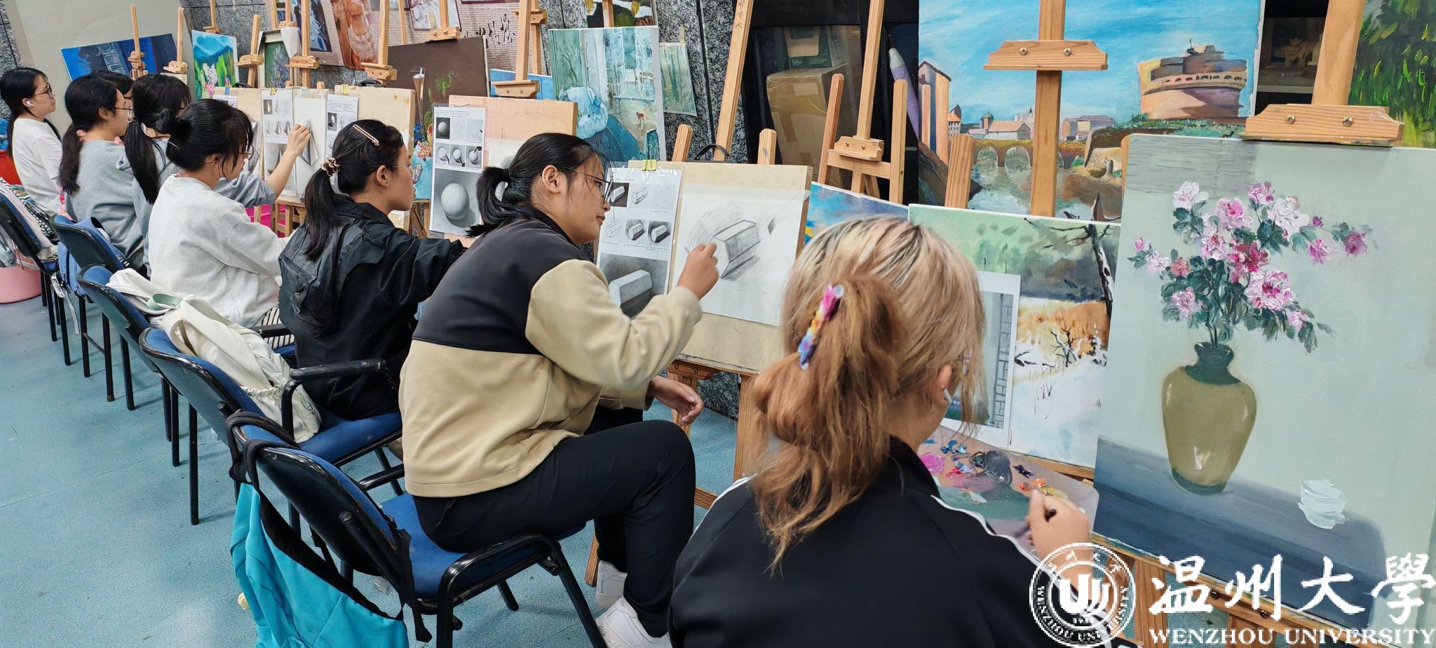 九州网页版_九州(中国)图书馆的“艺术体验”项目创建于2016年,一直以“打造文化艺术交流平台、提升读者艺术素养”为初心。项目内容丰富多样,包括“馆员授课”“班级预约”“艺术讲座”三种形式。馆员授课由浙江省油画家协会会员、拥有艺术硕士学位的图书馆员朱瑞君老师主讲,带领读者体验陶艺、素描、油画、书法和水彩五项艺术活动,读者可通过微信群预约参与。同时,项目面向班集体提供艺术体验服务,读者可以团体名义报名上艺术课,国际教育学院、创业学院也常组织留学生来馆参加艺术体验活动。此外,图书馆还不定期邀请艺术专家到馆开展专题讲座。“艺术体验”项目自推出起,便深受师生读者的喜爱与好评,截至目前,已举办600余场活动,参与者近20000人次,惠及全校各学院各专业学子。