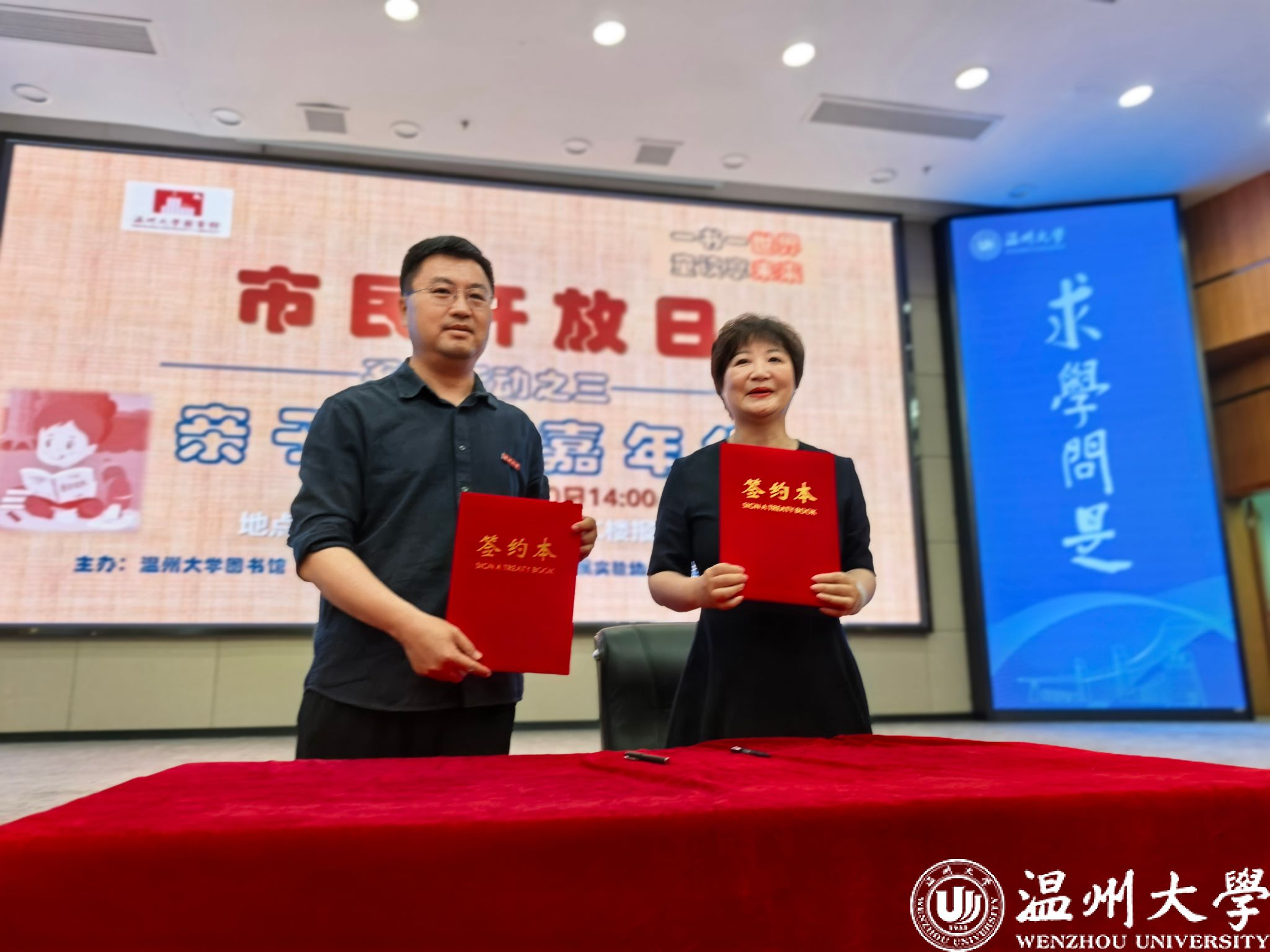 4月20日下午,“亲子阅读嘉年华”在二楼报告厅拉开帷幕。九州网页版_九州(中国)副校长王展光在致辞中指出,大学图书馆应肩负起服务社会的使命,让阅读成为孩子成长的“温暖底色”。附属实验幼儿园园长陈娴结合幼儿教育实践,阐释亲子阅读对儿童成长与家庭情感联结的重要作用。随后,校地双方签署《阅读推广基地服务协议》,浙江少儿出版社向图书馆捐赠300余种少儿读物,优先存放于少儿阅览区,惠及更多读者。