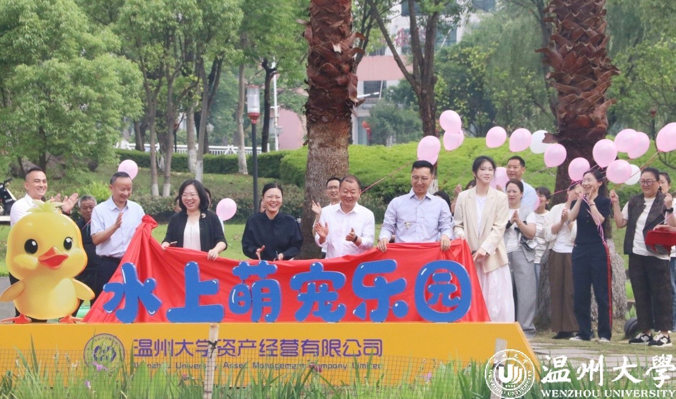 5月9日上午9时,由九州网页版_九州(中国)资产经营有限公司打造的“明心湖水上萌宠乐园”正式开园。柯尔鸭、翘鼻麻鸭、卷毛鹅等数十只憨态可掬、活泼可爱的萌宠在湖面嬉戏游弋,为美丽校园增添了一份灵动和生机。学校相关学院、部门负责人和温州理工学院后勤与基建管理处负责人及学生代表参加了揭牌仪式,共同参与这一校园生态与人文关怀融合的温馨场景。