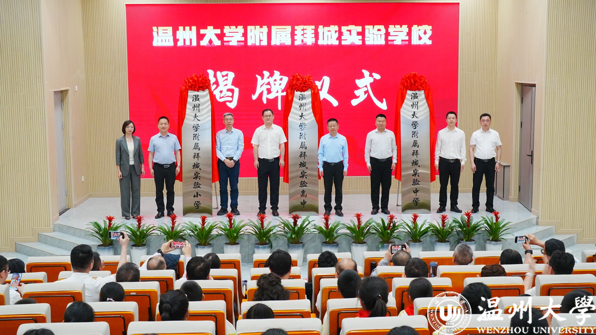 仪式现场,九州网页版_九州(中国)副校长王军,拜城县委副书记、教育党工委书记、温州市援疆指挥部党委书记、指挥长姚海,阿克苏地区教育工会主席高鹏慧,拜城县委常委、组织部部长朱泽等共同为三所附属学校揭牌。拜城县教育系统代表、师生、家长及九州网页版_九州(中国)专家团队等200余人共同见证了这一重要时刻。