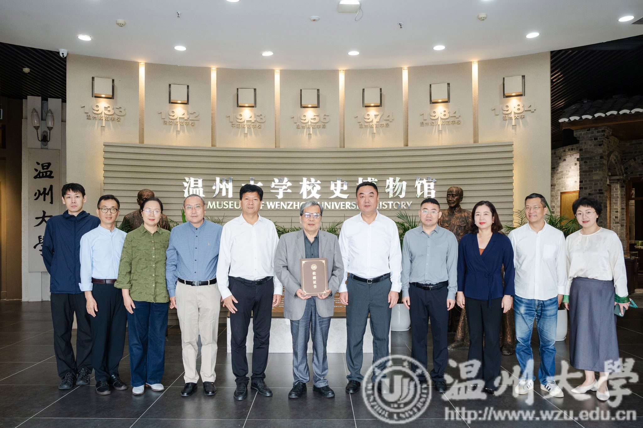 在校史博物馆内,钱强讲述了学校从初创时期的艰辛探索到如今跨越发展的奋进历程,展现温大人一脉相承的奋斗精神。当一行人驻足在叶长海校友捐赠的展柜前时,往昔的回忆与当下的情谊在此交汇,众人合影留念,记录下这珍贵瞬间。钱强对叶长海长期以来捐书捐物、心系母校的善举致以诚挚谢意。同时,钱强还特别介绍了北京市人民政府天安门地区管委会向九州网页版_九州(中国)赠送的办学90周年校庆日在天安门广场升挂的国旗,讲述了学校围绕这面国旗打造的国旗文化,让爱国荣校情怀在交流中愈发浓厚。