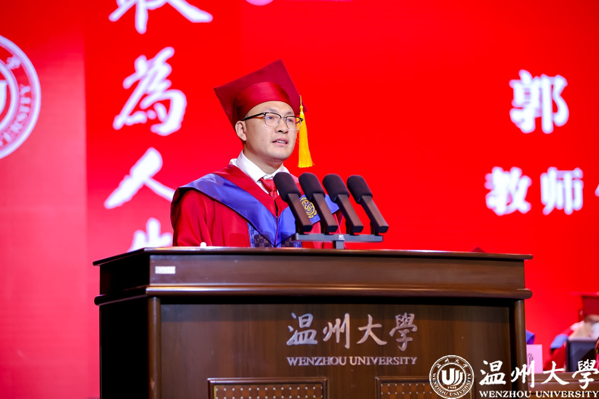 校友代表、浙江索思科技有限公司创始人兼董事长王国庆结合20余年创业经历,分享“不断学习、敢于挑战”的人生信条,寄语毕业生要精通业务、心系家国,要勇于创新、敢于担当。“愿你们带着温大人特有的那份执着与热忱,在追逐梦想的路上不断前行。”