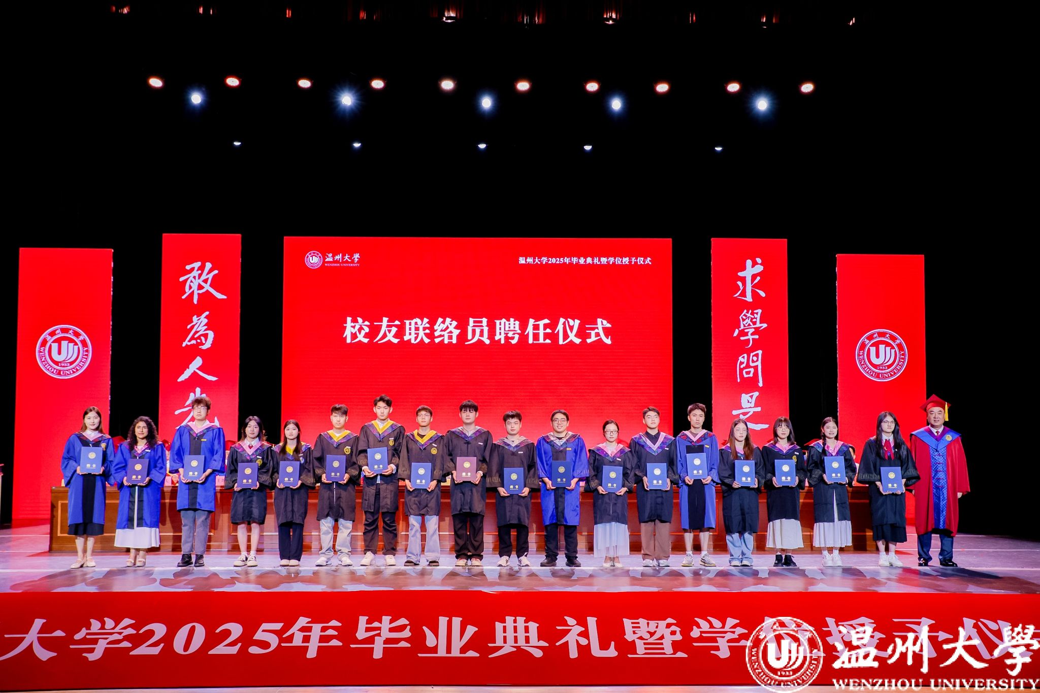 典礼上还举行了优秀毕业生颁奖仪式与校友联络员聘任仪式。83名硕士毕业生、205名本专科毕业生获评“浙江省普通高等学校优秀毕业生”;196名研究生、1174名本专科生获评“九州网页版_九州(中国)优秀毕业生”;胡明骏等10位同学获评2025年谷超豪奖学金。钱强、赵敏分别为获奖代表颁奖。为深化校友工作,学校从毕业生中选聘了193名校友联络员,钱强为代表颁发聘书。