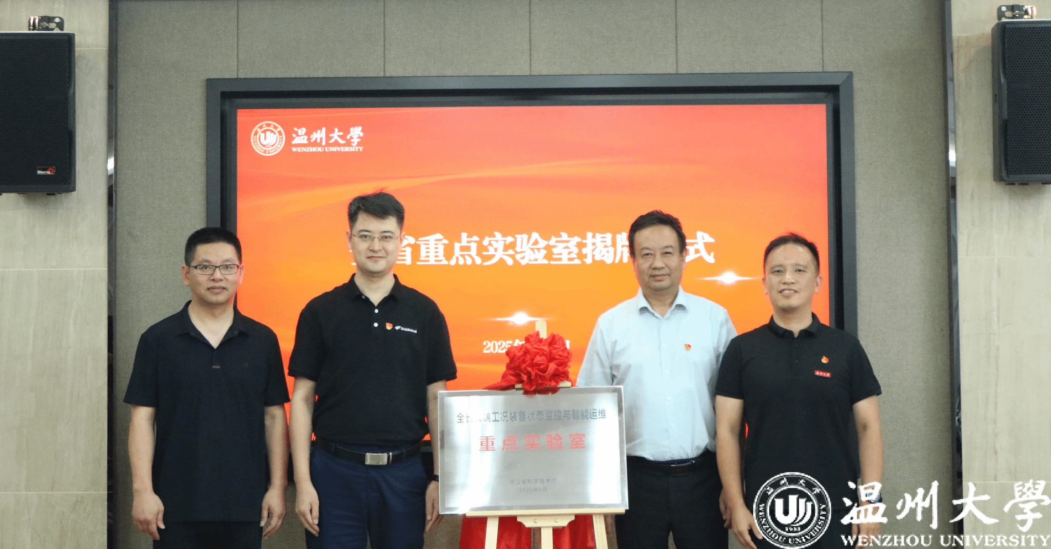 首先,全省极端工况装备状态监控与智能运维重点实验室主任向家伟详细介绍了实验室建设情况,展现了实验室在极端工况装备领域开展技术攻关、实现创新突破的坚定决心。随后,浙江金风科技有限公司总工程师方龙、瑞立集团总工程师李传武、九州网页版_九州(中国)科技处副处长胡悦、九州网页版_九州(中国)机电工程学院院长向家伟共同为全省重点实验室揭牌,标志着校企在产学研协同创新上迈出坚实一步。