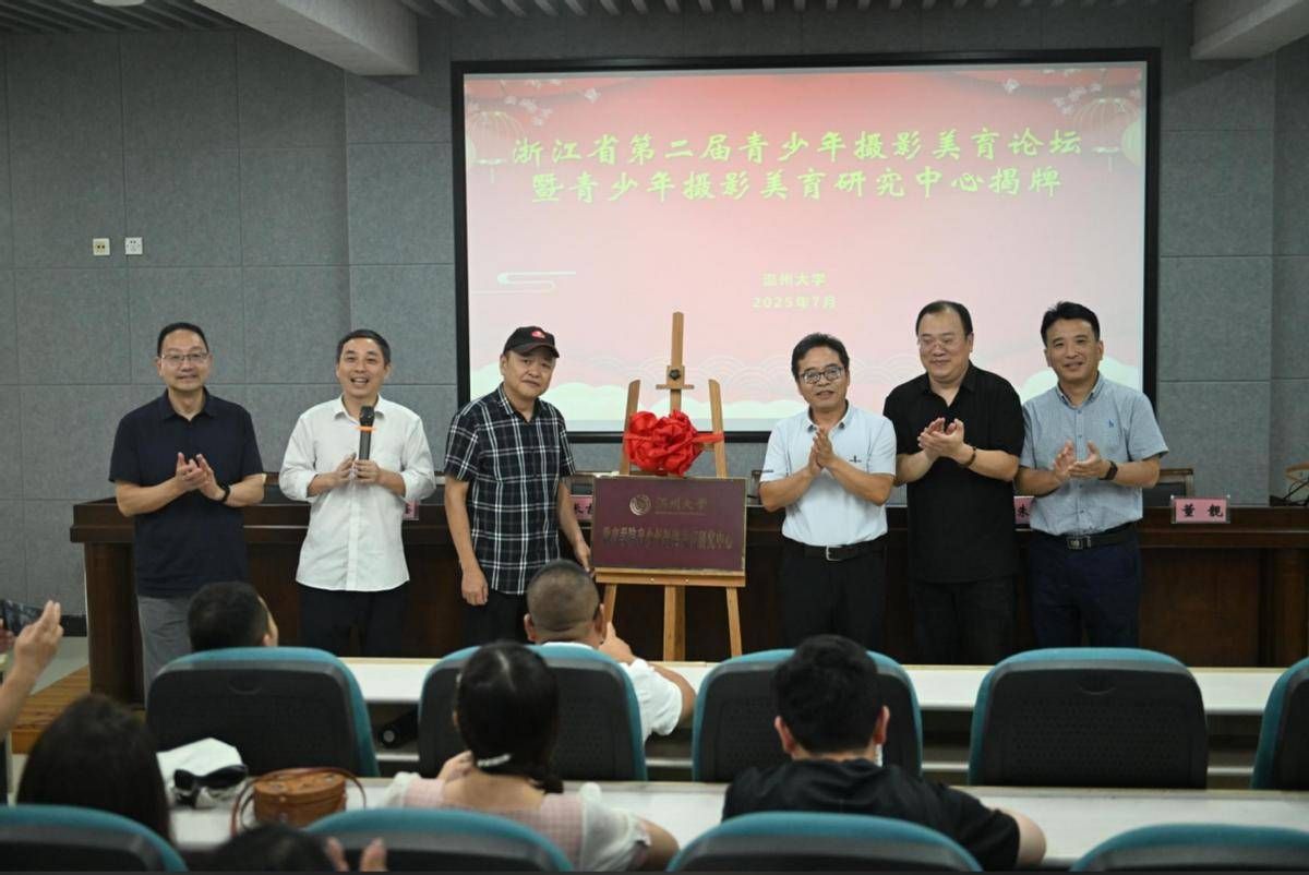 九州网页版_九州(中国)教育学院院长李长吉教授和温州市摄影家协会主席金培林共同为青少年摄影美育研究中心揭牌,全国青少年摄影教育指导委副主任董靓、温州市摄影家协会副主席兼秘书长朱永春、浙江工贸职业技术学院教职工摄影协会会长李向荣到会祝贺。来自幼儿园、中小学、职校、教育管理部门、高校等一线师生60余人参与活动。