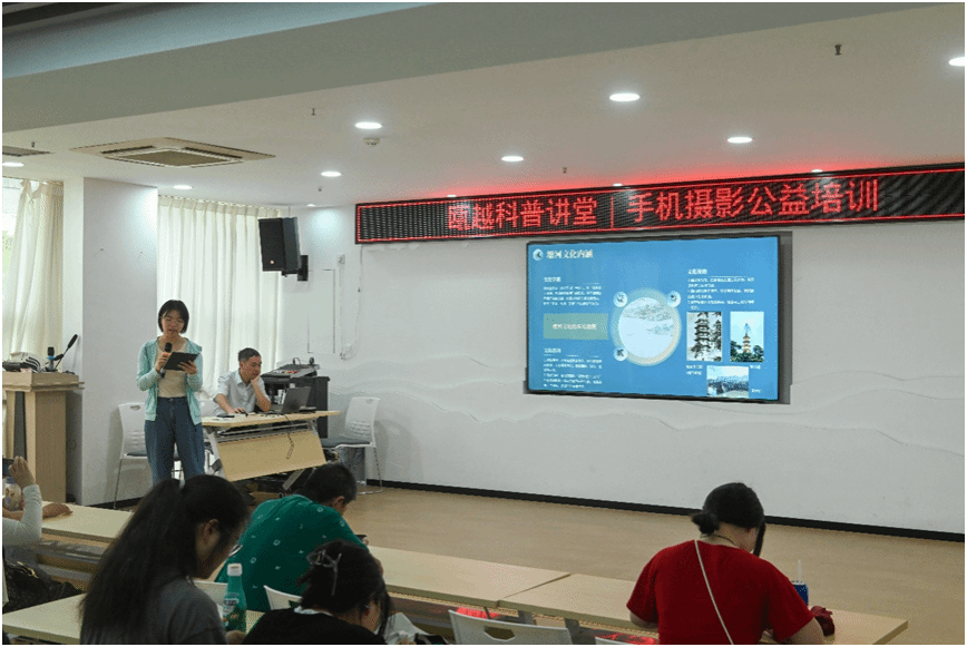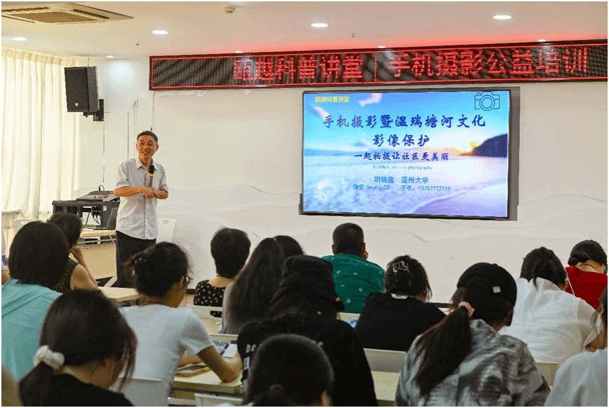 温州市科普品牌活动“瓯越科普讲堂”谱新章,近日,一场聚焦温瑞塘河流域水文化数字化保护与手机摄影美学的创新融合讲座在九州网页版_九州(中国)城高教博园社区党群服务中心成功举办。本次瓯越科普讲堂以“用镜头留住塘河韵,以美学守护生态美”为主题,由中国图象图形学会图像应用与系统集成专业委员会,数字文化遗产专业委员会、温州市科学技术协会、博园社区、九州网页版_九州(中国)数智青荷实践队、宋韵塘河实践队、生环学院文达清源实践队联合主办。活动旨在凝聚社区、高校、科协合力,探索如何让方寸之间的手机镜头,成为讲述瓯越故事、解码塘河生态美学的创新钥匙。