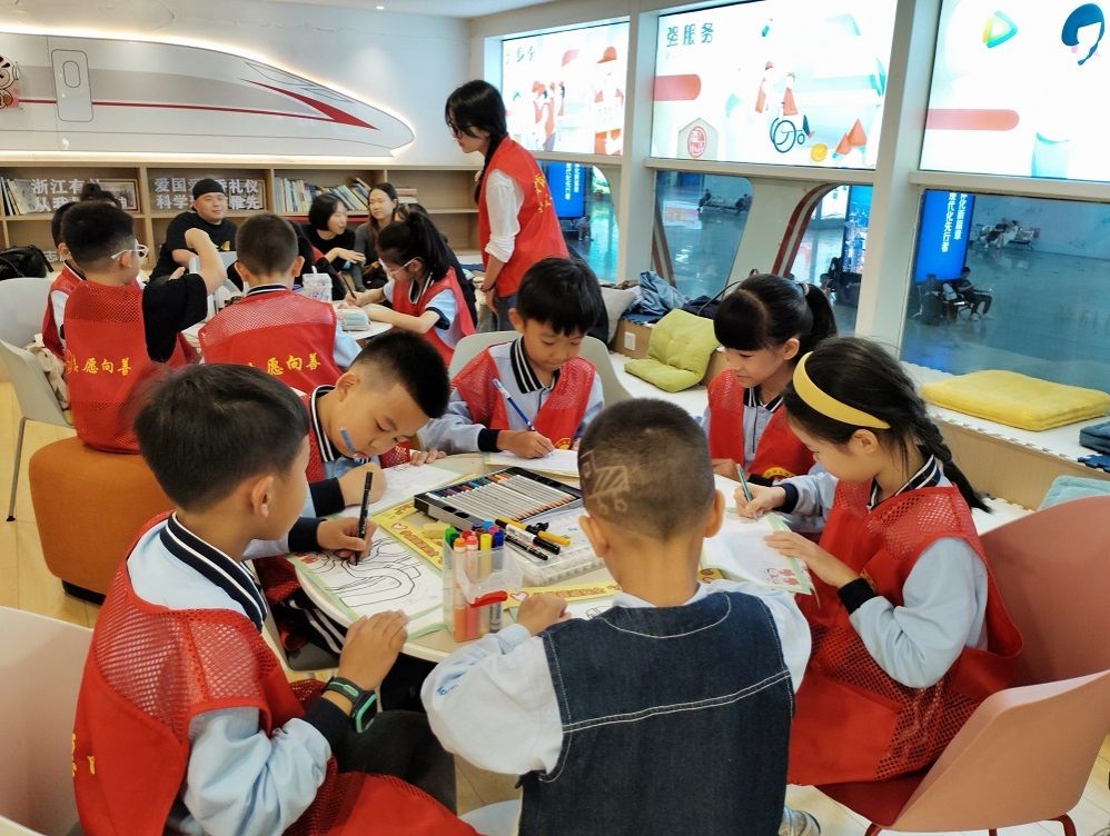 在温州动车南站,一场管道知识的“奇妙脱口秀”正在上演。知心姐姐爱队的志愿者们从日常生活中的水管、下水道管,到复杂的工业管道,向小朋友们深入浅出地讲述了管道的作用和重要性。“管道像城市的血管一样,保障着人们的生活。”小朋友们拿起画笔,兴致勃勃地画出自己心目中的管道。一幅幅色彩斑斓的画作里,有的管道像彩虹一样穿梭在城市中,有的管道里住着可爱的小精灵。志愿者还鼓励小朋友们变身“爱心小天使”,在出站口提供热情的志愿服务。“我们这次活动就是要让小朋友们既能涨知识,又能在帮助别人中收获快乐,在他们心里种下善良的小种子!”看着孩子们忙碌的身影,主讲石欣睿同学欣慰地说。