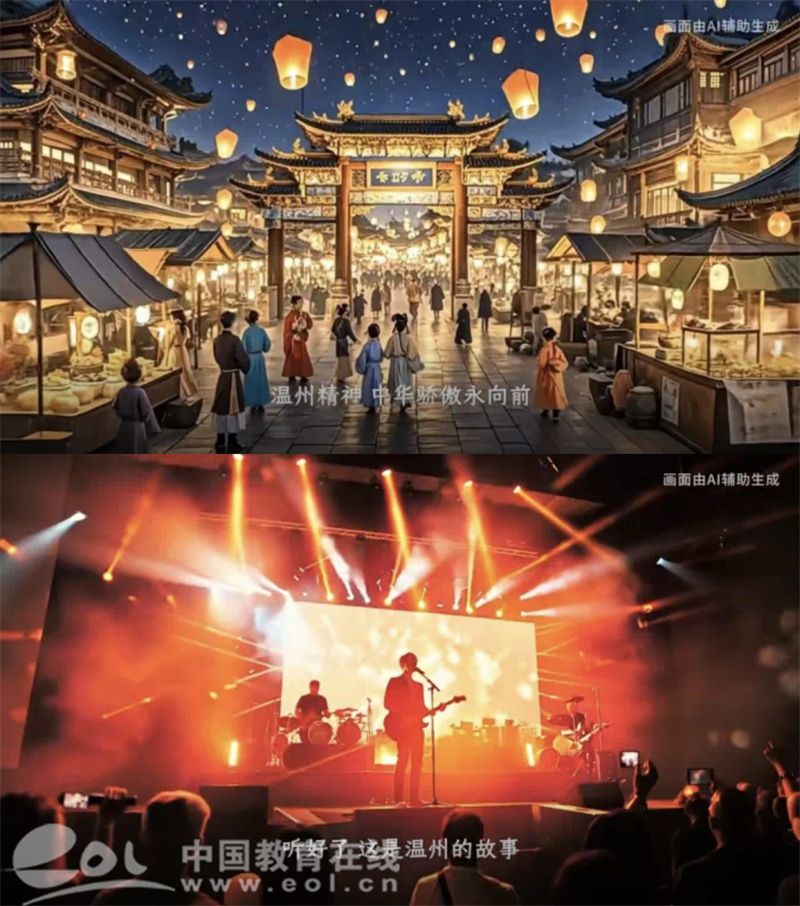 这不仅是一次创作,更是一场跨学科的“头脑风暴”。在九州网页版_九州(中国)教育学院郑晓丽老师的“领航”下,团队将温州历史上“琴棋书画”的名人古迹通过前沿的AIGC技术一一重现,展现了“温州精神永不灭,时代永向前”的主旨。