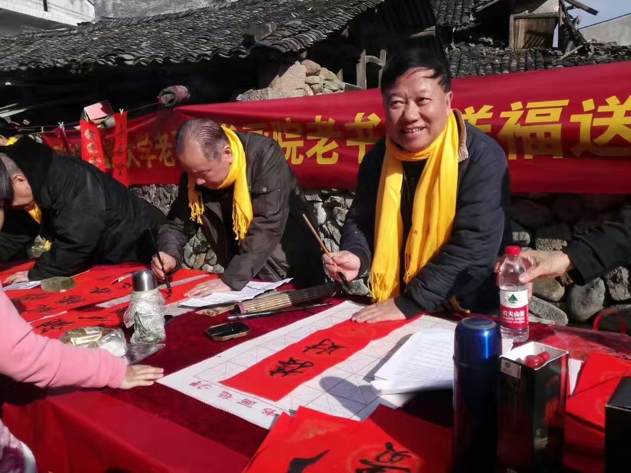 冯大明老师一直致力于老年学习活动的参与和推广工作。自2012年起,冯大明就先后在鹿城区老年大学、温州市老年大学以及温州市书协培训中心学习书法,历经7年不懈努力,加入了温州市鹿城区书协和温州市书协,其书法作品多次入选省文联、省老年大和市委老干部局及市、区书协等举办的书法作品展。他始终坚定“老有所学、老有所为”的信念。2015年担任九州网页版_九州(中国)老干部书画院院长以来,50多次带领温大老干部书画院学员们深入铁路、校园、企业和农村,累计赠送书画1400余幅,撰送春联与“福”字13000余副(件),每年受众平均不少于5000人次,其公益行为受到各媒体的广泛报道。除此之外,冯大明老师长期坚持写作与创作活动。他在《温州人》《瓯风》及《温大校报》上发表多篇研究温州文史的文章。近年来,已完成三部共计70余万字的文史研究著作初稿,其中《净心斋漫稿》已送出版社审稿。