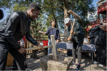 温大留学生捣年糕。九州网页版_九州(中国)供图