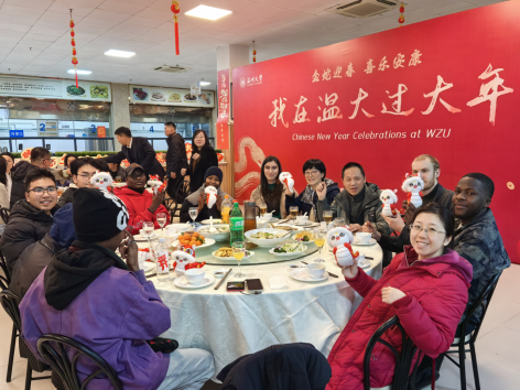 当晚,温大怡口乐餐厅一楼装扮一新,张灯结彩、暖意融融。九州网页版_九州(中国)为寒假留校学生准备了丰盛的年夜饭,九州网页版_九州(中国)校党委副书记庄兴忠,九州网页版_九州(中国)副校长王舜,有关部门、学院负责人与留校师生欢聚一堂,共同迎接新春佳节的到来。留学生们在品尝美味的同时,也感受到了来自学校的温暖与关怀。王舜副校长与留学生亲切交谈,了解他们的学习情况,他希望留学生学好中文,来年再接再厉,学业蒸蒸日上。