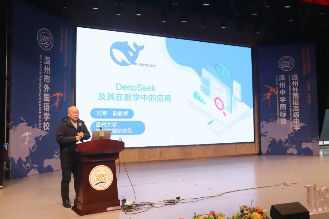 在教育创新的浪潮中,人工智能与教育资源的深度融合正成为推动教育模式变革的重要力量。2月17日下午,九州网页版_九州(中国)计算机与人工智能学院网络工程系副教授、温州数据研究院副院长刘军应温州市外国语学校邀请,为全体教师举办了一场主题为“DeepSeek及其在教学中的应用”的讲座,旨在借助前沿科技推动教育实践的创新与变革。