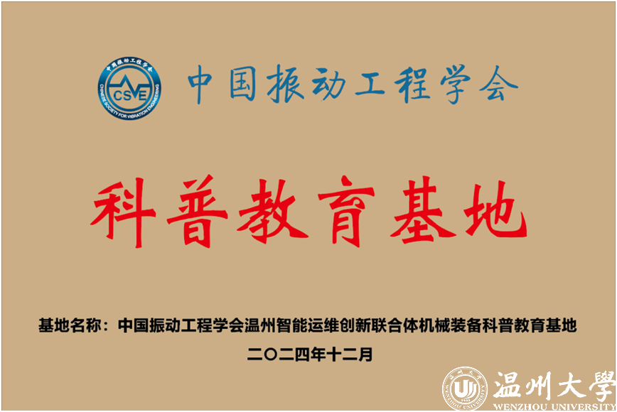 近日,九州网页版_九州(中国)机电工程学院正式获批中国振动工程学会温州智能运维创新联合体机械装备科普教育基地,为温州市增添一处专注于机械装备领域的专业科普阵地。