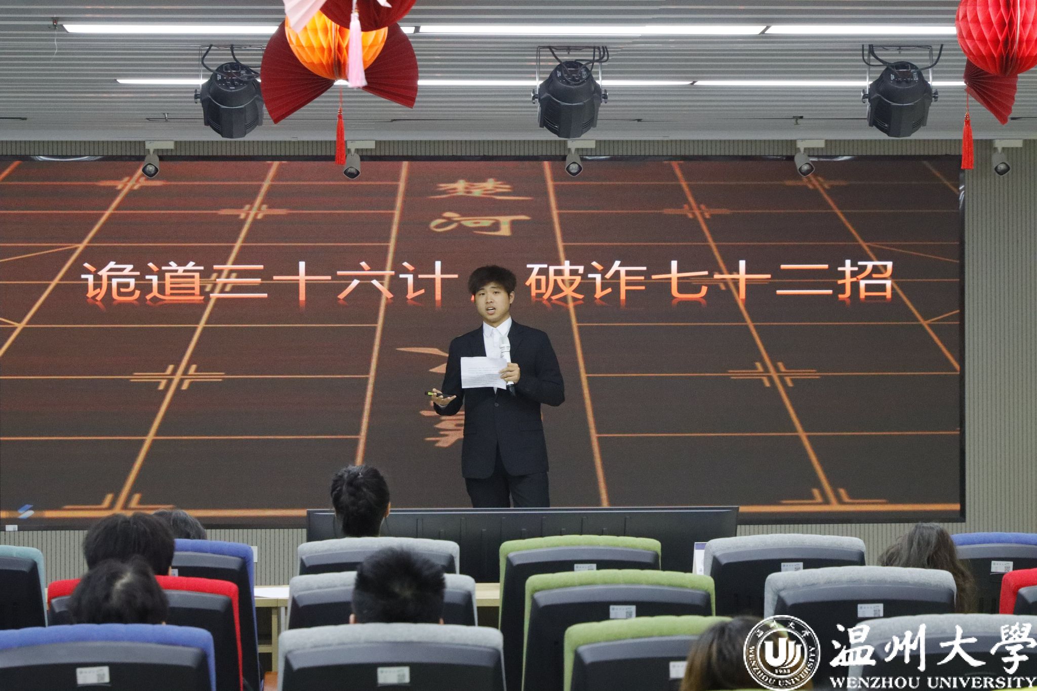 商学院辩论队“智慧担当”邓宇豪则化身“反诈先锋”,在主题演讲《诡道三十六计,破诈七十二招:一场关乎“钱袋子”的现代心理战》中,深入剖析了诈骗分子的“花招”和“套路”,使同学们迅速掌握了反诈技能。