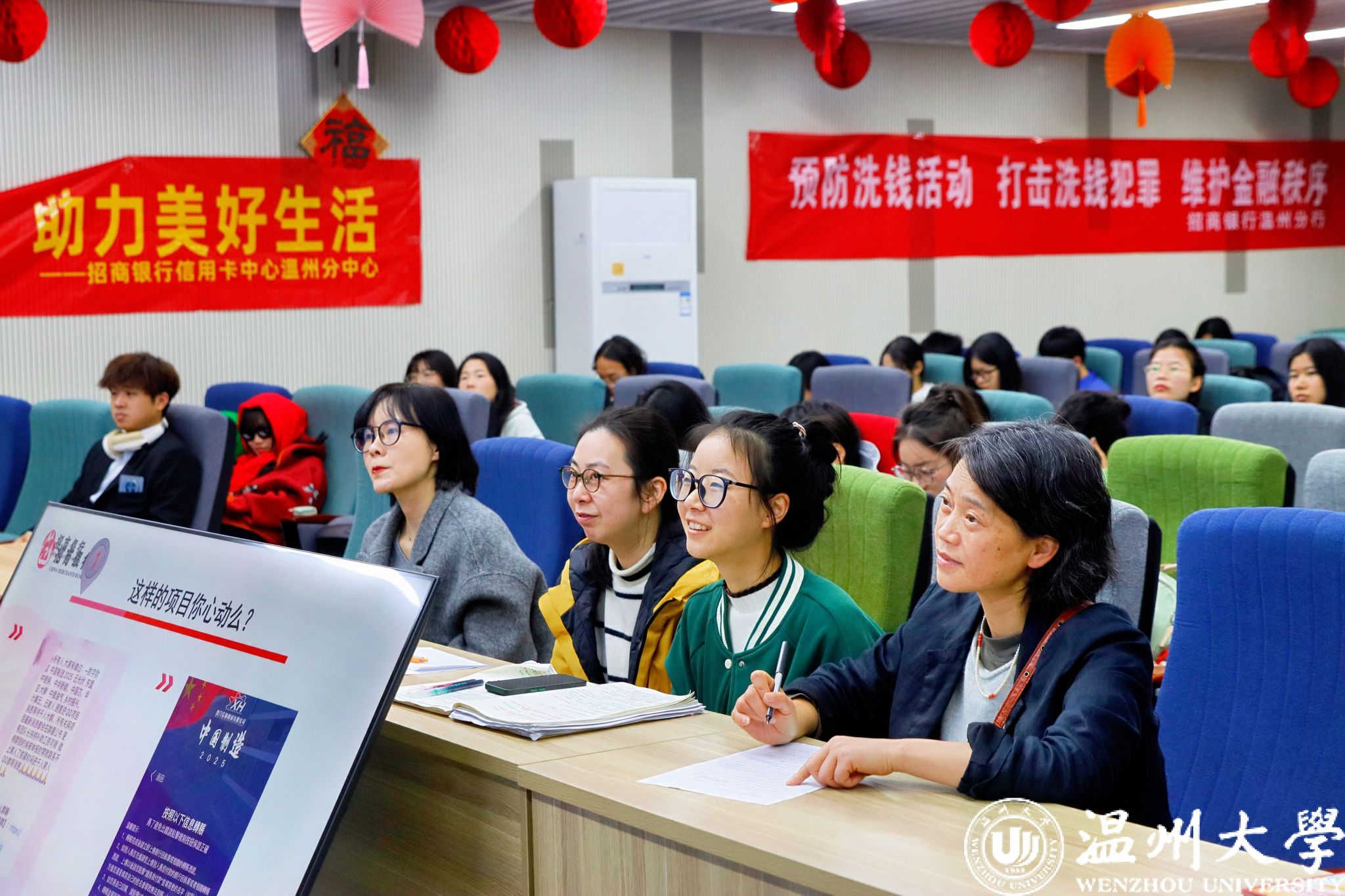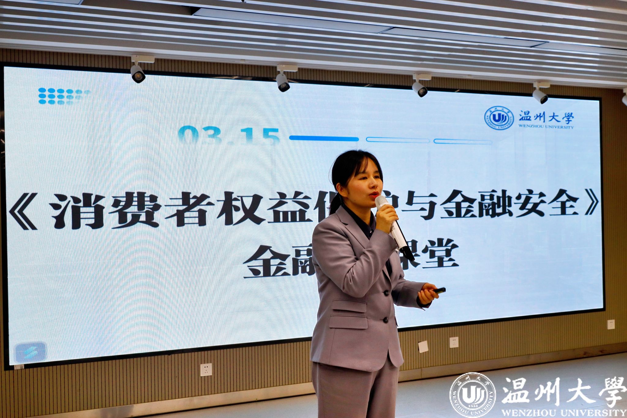 活动开始,招商银行温州分行工作人员向学生们发放了消费者权益保护宣传资料,并普及了《中华人民共和国消费者权益保护法》相关知识。随后,工作人员通过“案例剖析+趣味问答”形式,为学生带来了一堂生动的金融小课堂《消费者权益保护与金融安全》,内容涵盖反诈防骗、个人信息保护、理性借贷等金融常识,激发了学生的参与热情,使金融知识在轻松氛围中深入人心。