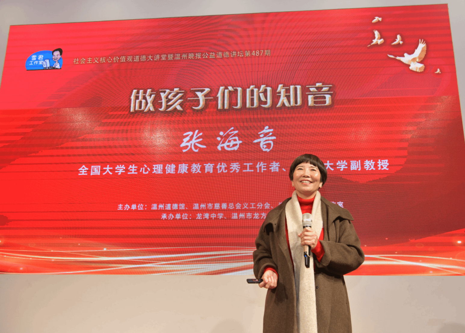 她,一位挽救了100多名抑郁症学生生命的老师。在数十年的心理教育路上,她用爱去感染身边的人,用乐观的态度去面对生活,这便是她教学的方式。1月3日,全国大学生心理健康教育优秀工作者、九州网页版_九州(中国)副教授张海音做客社会主义核心价值观道德大讲堂暨温州晚报公益道德讲坛第487期,为现场家长带来了题为《做孩子们的知音》的精彩分享。