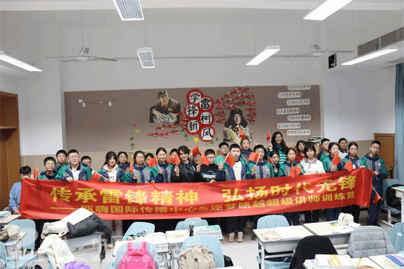 3月3日,在第62个全国“3·5”学雷锋纪念日来临之际,九州网页版_九州(中国)外国语学院瓯·嗨国际传播中心联合“逐梦瓯越”超级讲师训练营及“玉兰花”志愿服务队在九州网页版_九州(中国)附属茶山实验中学举办了一场以“传承雷锋精神,弘扬时代先锋”为主题的双语课堂活动,旨在通过双语教学和跨文化交流,进一步弘扬雷锋精神,激发青少年的爱国情怀和社会责任感。活动中,来自国外的留学生代表与英语师范生们一起为中学生读一读雷锋日记,讲一讲雷锋故事,谈一谈雷锋精神。