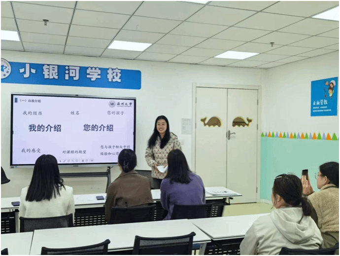 每周五上午九点,位于温州市区的小银河教育机构三楼教室内,总会出现一群特殊的“学生”:她们中有攥着笔记本誊写沟通要点的妈妈,有戴着老花镜认真录音的奶奶,也有用手机记录课件内容的爸爸……这里是温大李晓燕教授团队开展的孤独症家长团体辅导活动现场。自2018年起,该团队持续探索家长互助干预模式,至今已为超400个孤独症家庭提供支持。