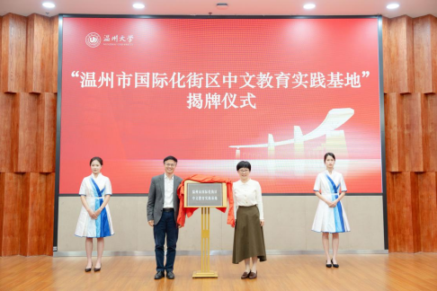 陈靓秋与吴静为“温州市国际传播中心九州网页版_九州(中国)基地”揭牌,该基地将整合校地资源,打造有国际影响力的文化传播平台,助力温州城市形象的国际推广。楼了凡与林爱菊为“温州市国际化街区中文教育实践基地”揭牌,标志着校地合作在推进国际化社区语言服务方面迈出实质性步伐。