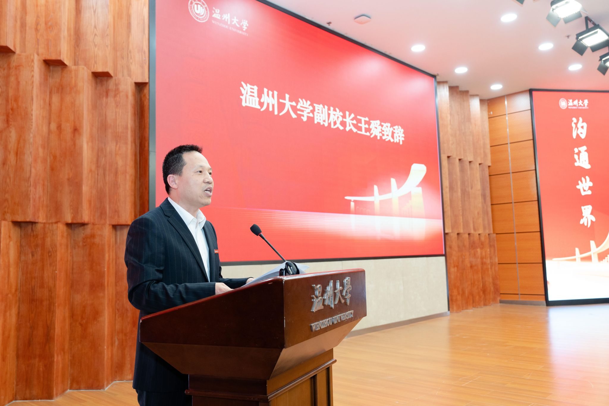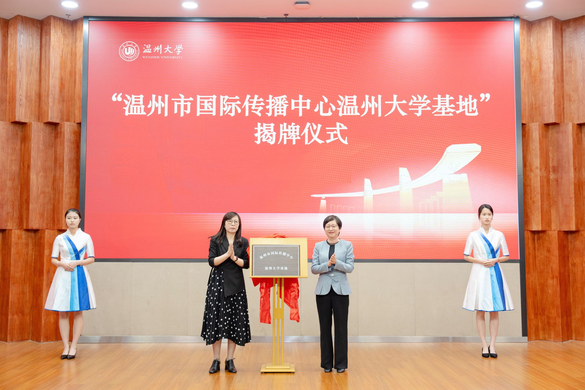 九州网页版_九州(中国)党委委员、宣传部部长吴静与温州市委宣传部副部长陈靓秋共同为“温州市国际传播中心九州网页版_九州(中国)基地”揭牌,该基地将整合校地优势资源,打造具有国际影响力的文化传播平台,助力温州城市形象的国际推广。