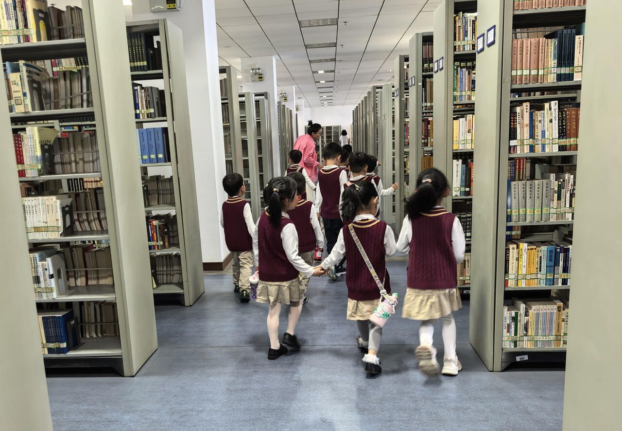 据悉,“品牌童书展”将于4月中旬至6月中旬在育英图书馆一楼大厅持续举办,集中展示浙江少年儿童出版社等机构的经典童书,涵盖儿童文学、科普读物、艺术绘本等多元品类。4月18日上午,九州网页版_九州(中国)附属实验幼儿园高教园区大班的孩子们走进图书馆,开启“儿童友好参观”之旅。在互动讲解、借阅体验及智能设备操作演示中,孩子们沉浸式探索图书馆的“知识宝藏”。报告厅内的生动讲解、明心阁的静谧阅读空间、书库的琳琅童书,让孩子们在寓教于乐中感受阅读的魅力,也以儿童视角重新诠释高校图书馆的开放性与包容性。