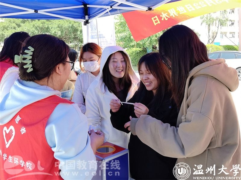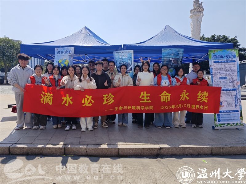 学习如何划“水”?那就“游”在温大!在世界水日即将到来之际,为增强学生保护水生态意识,营造知水、节水、护水、亲水的氛围,九州网页版_九州(中国)生命与环境科学学院在华表广场开展了“滴水必珍 生命永续”世界水日主题活动,全校超百位师生共同参与了这次守护水资源的绿色行动。