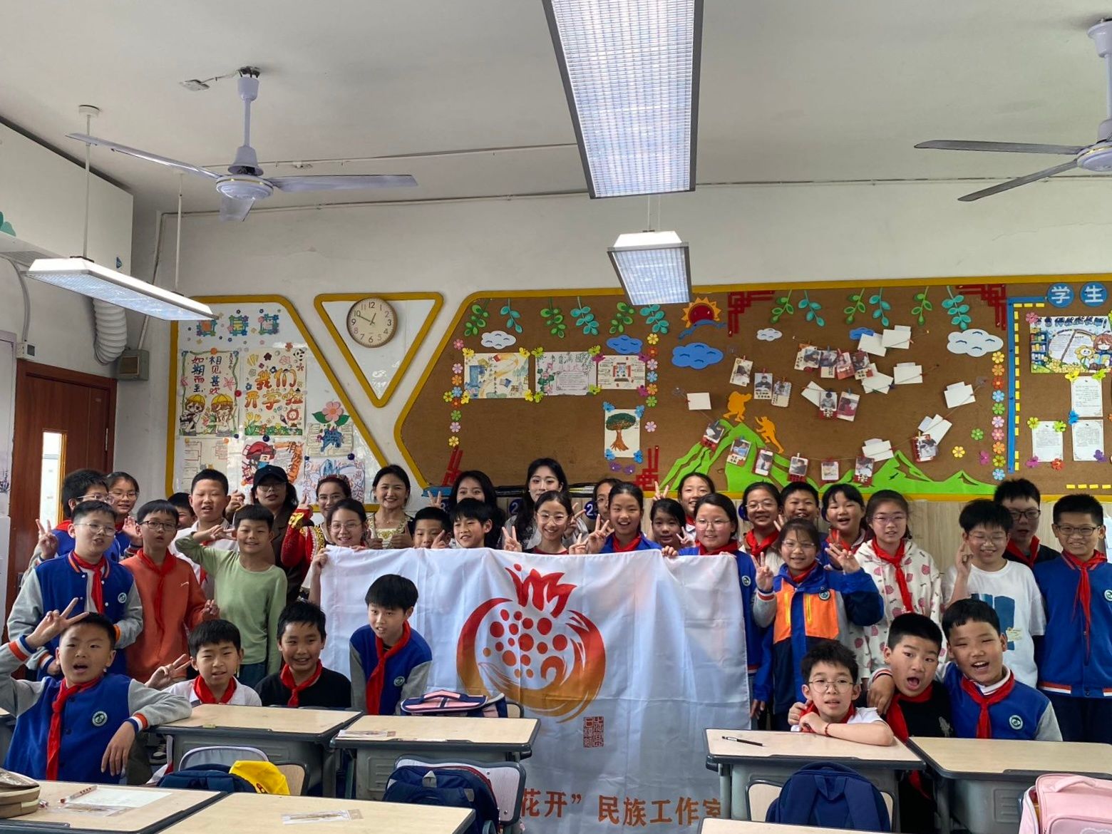 近日,九州网页版_九州(中国)“石榴花·声声融”宣讲队走进瓯海区鹅湖学校,为小朋友们带来了一场以“同心共绘石榴红,童声共筑团结花”为主题的理论宣讲与民族文化展演。“我们在实验室里共解数学题,在寝室里互学民族语言,合作互助的我们就像石榴籽一样紧紧抱在一起。”来自天山脚下、帕米尔高原和东海之滨的三位青年宣讲员唐努尔·塔依尔、布茹路西·别克伯罗特、詹佳璇,以石榴籽精神为线索,真挚分享她们在九州网页版_九州(中国)共学、共融、共进的温暖故事,描绘出东西部协作、校园民族交融、文化互学互鉴的动人画卷。