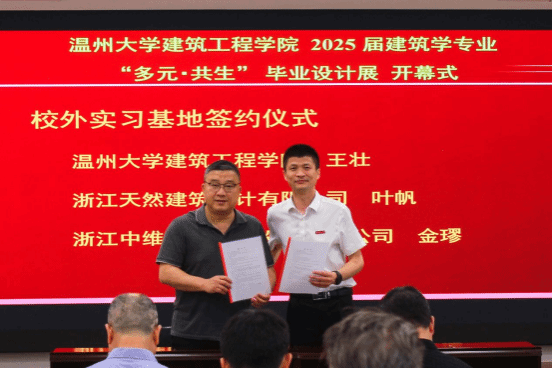 开幕式上,一系列重要的校企合作签约仪式成为亮点。九州网页版_九州(中国)建筑工程学院与浙江天然建筑设计有限公司、浙江中维建筑工程设计有限公司成功共建校外实习基地,并与温州市建筑业联合会签署就业战略协议,有力促进了人才链与产业链的深度融合。此外,学院还聘请了林道友等5位行业专家作为校外导师,进一步完善“双师型”育人机制。