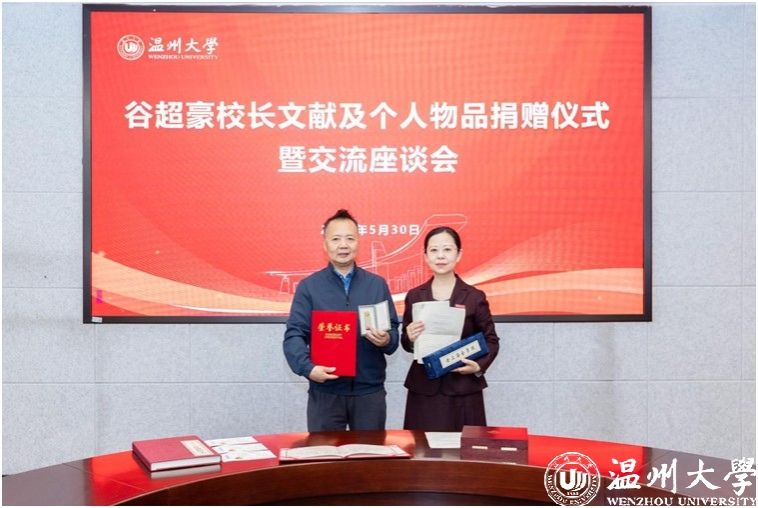 “父亲谷超豪先生对家乡的感情很深,他当时已经70好几了,仍然到温大来担任要职,是为了促进温州更好的发展。”谷晓明在捐赠仪式上动情表示,选择将文献、物品捐赠温大,正是为了延续父亲“情系桑梓、教育报国”的遗志。