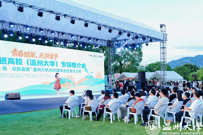 6月20日,“一群人宣介一座城”浙江金华文旅进高校九州网页版_九州(中国)专场推介会暨“青春π场・社韵音潮”九州网页版_九州(中国)2025届毕业生音乐之夜,在九州网页版_九州(中国)南校区明心湖畔举办。