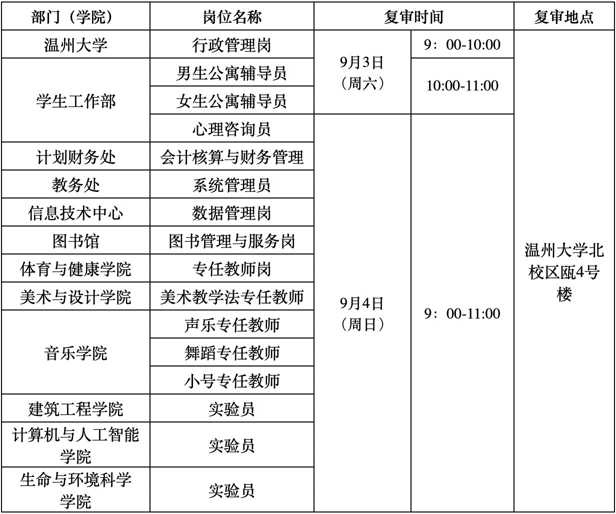 各岗位资格复审时间地点安排如下: